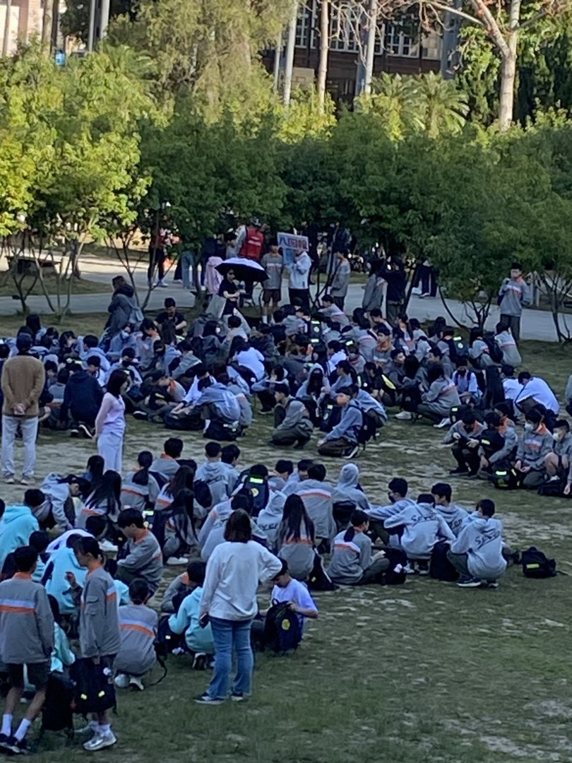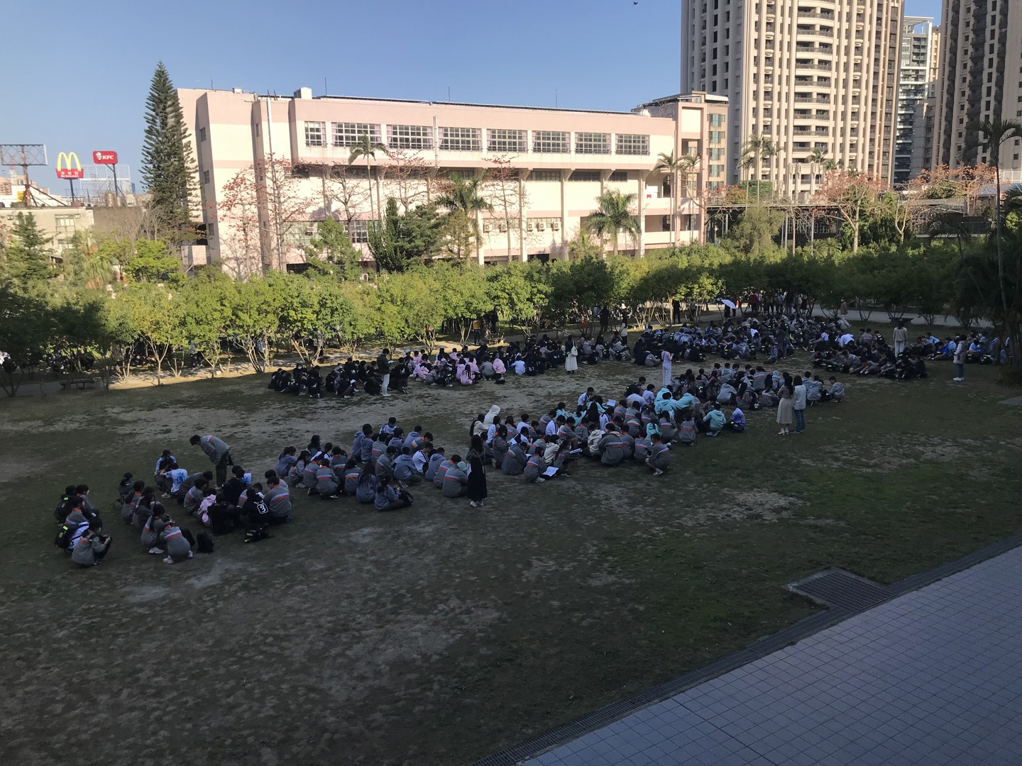 本校於三月份進行二次地震防災演練,當地震警報響起,全校師生立即執行「趴下、掩護、穩住」,地震結束時師生迅速疏散到空曠操場,同時就相關情況演練應變作為,常見有救護組針對地震常見的外傷,示範傷口處理及包紮。指揮官叮嚀每位同學,災害不知何時會來,但當我們具備了正確的知識與能力,並與家人建立好緊急應變共識,就能在恐慌中保持冷靜,守護自己,也守護身邊的人!