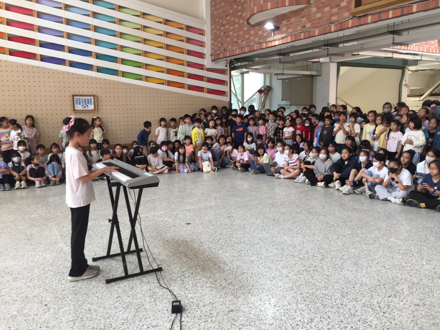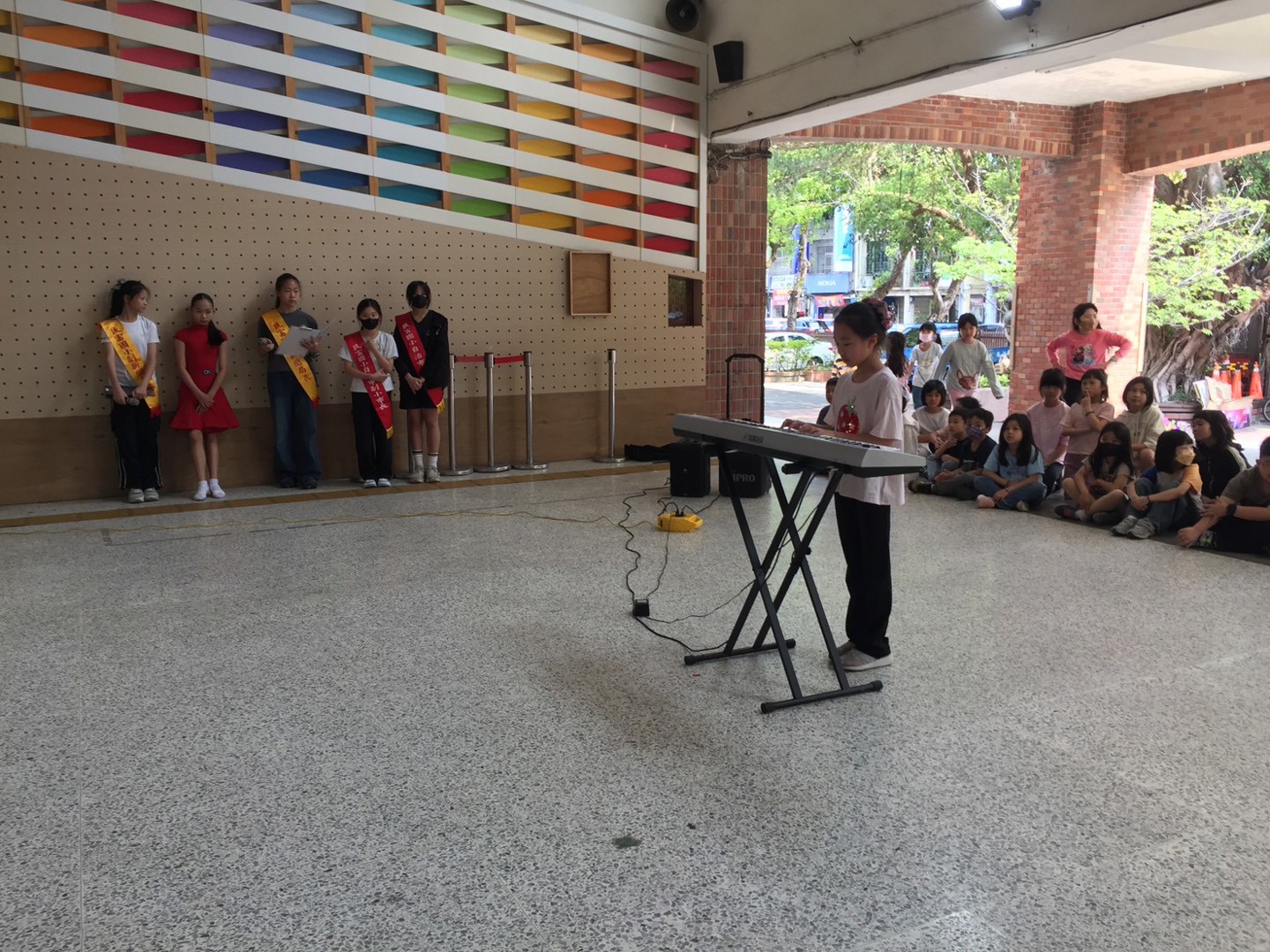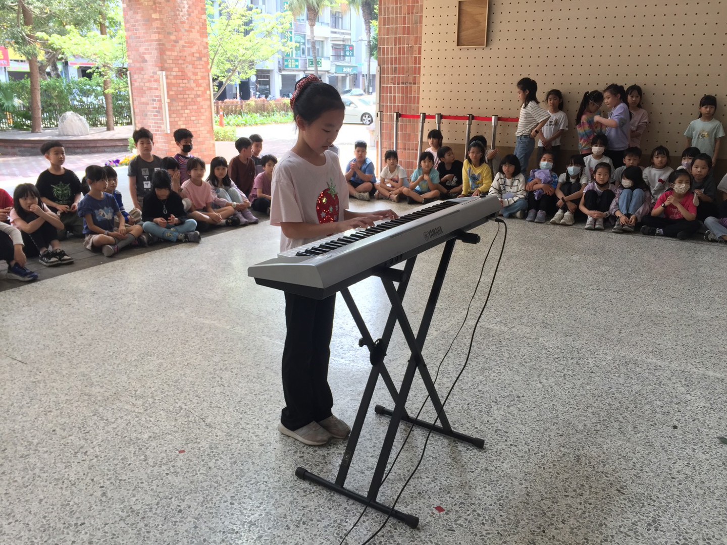 本周校園秀活動報名藝人為5年勇班的林芯瑜同學,並於大下課時帶來鋼琴演奏-海邊遊戲。