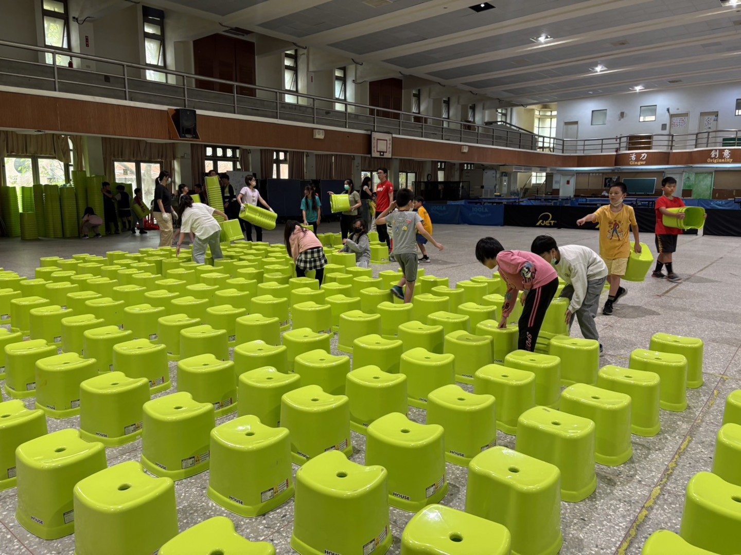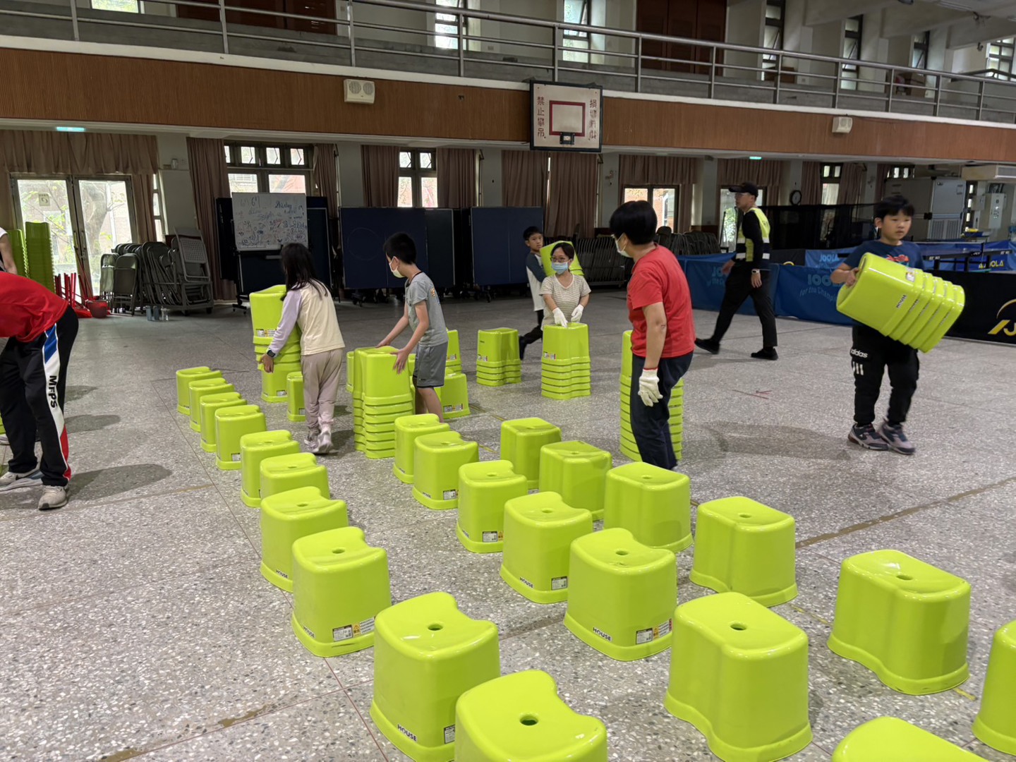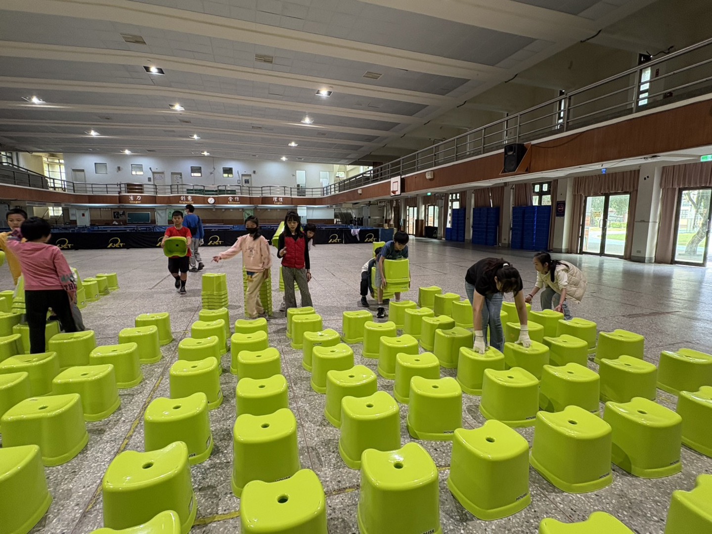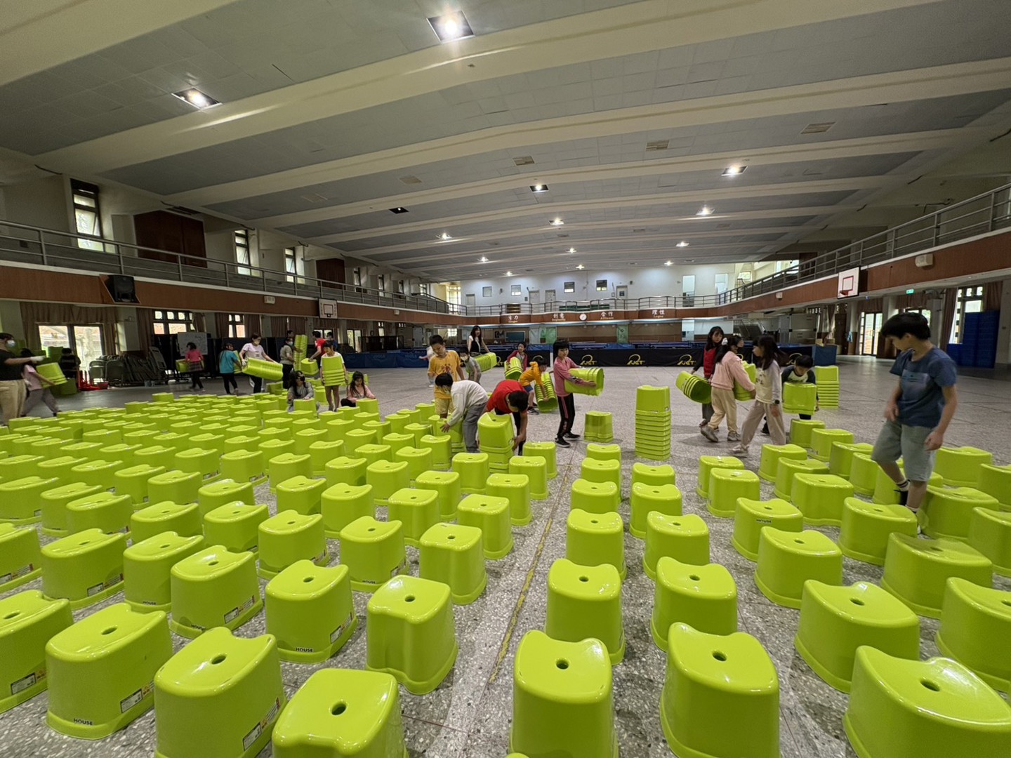 明天登場的115年兒童節慶祝大會將在活動中心舉辦,本校最貼心的總務處服務團隊下午幫忙活動排小綠椅,讓學生可以清楚看到精采表演,特別感謝金志鴻老師帶領409班學生協助一起排椅子,小椅子高度約40公分小朋友坐好後也不會擋到後面的人,大家就可以好好觀賞一連串表演。