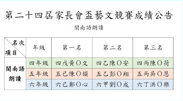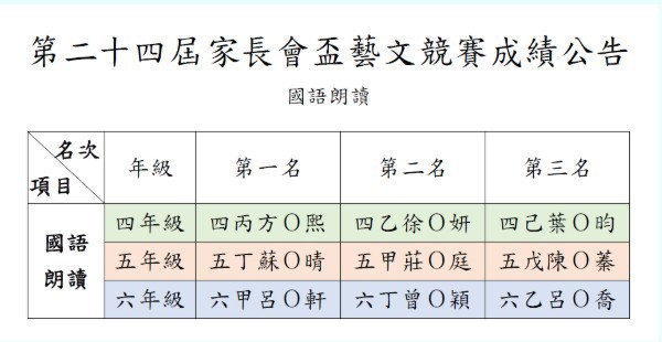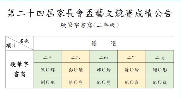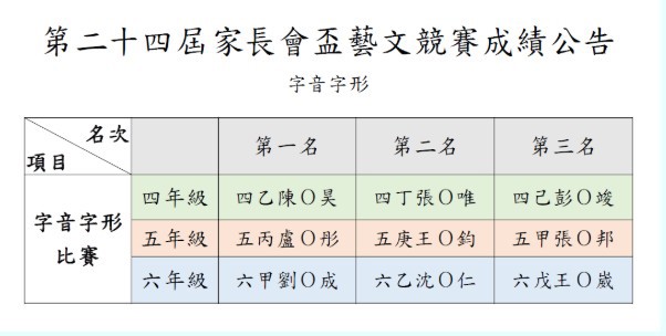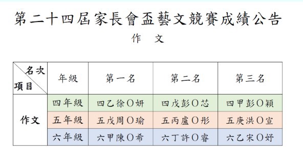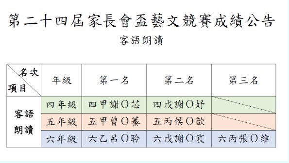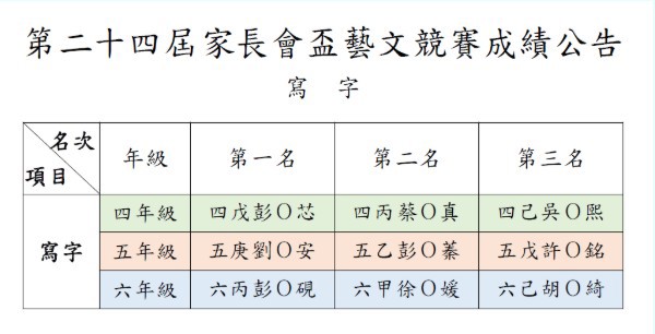 期待已久的家長會盃藝文競賽成績正式出爐啦!