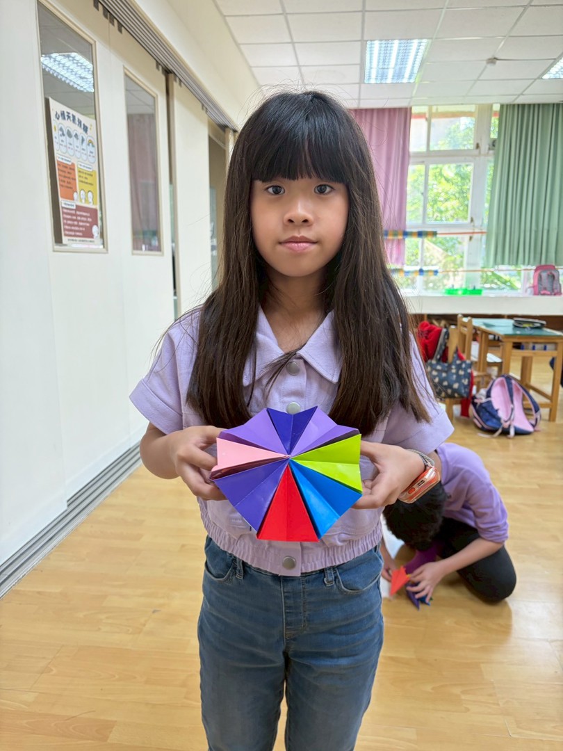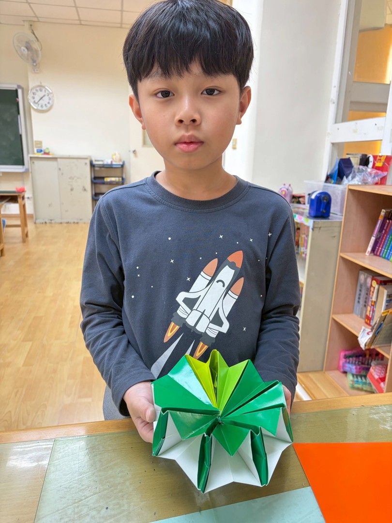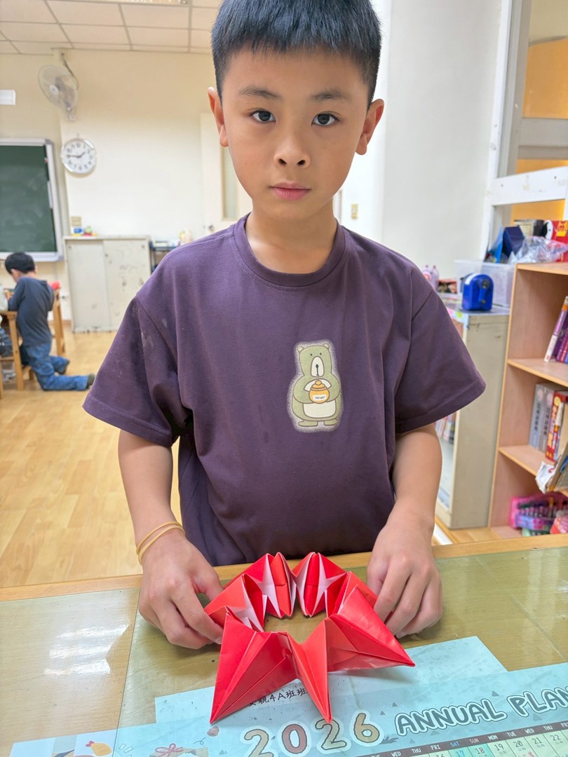 當所有相同的步驟被組合在一起時,小陽光們恍然大悟:熟能生巧,堅持不放棄就是成功的關鍵。他們對於自己完成這個精美折紙玩具充滿了自豪感與成就感。