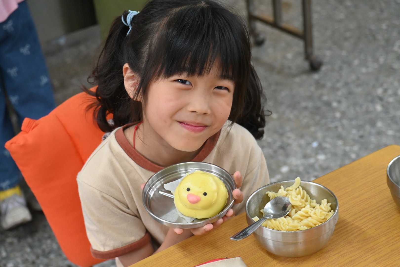 為了給孩子們一個難忘的兒童節回憶,新竹市政府今年不僅採納學生代表的建議,實施了超狂的「上下課翻轉」慶祝活動,更在營養午餐裡加了這個「超萌彩蛋」。