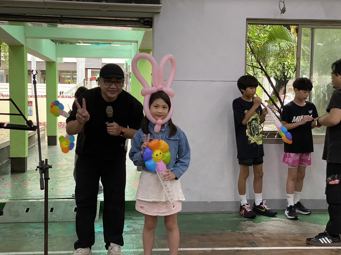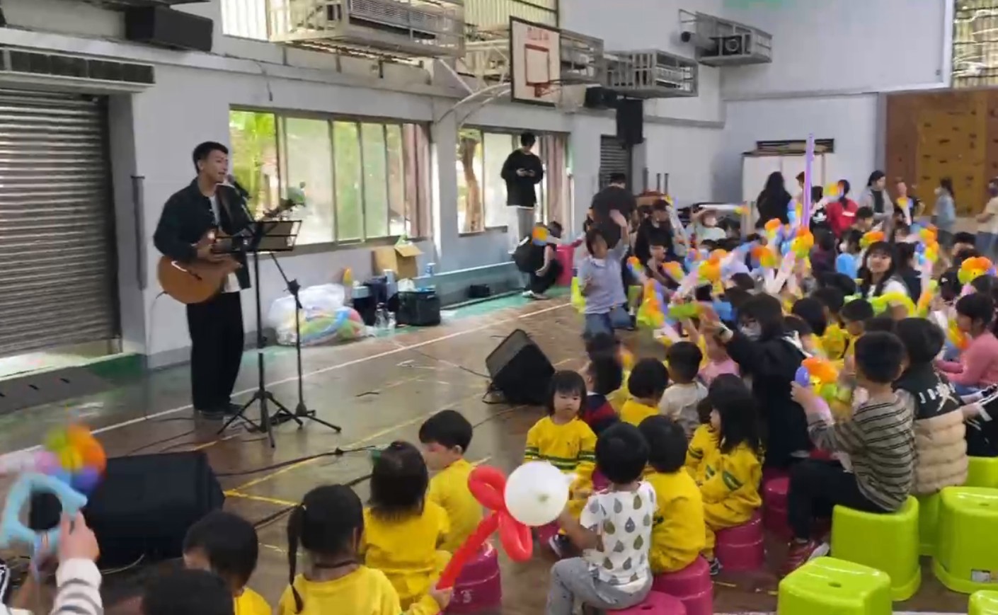 東側副舞台則主打互動體驗,由「國寶哥哥」帶來歡樂頌,並由氣球老師帶領學生進行氣球 DIY,讓每位孩子都能親手折出屬於自己的童趣禮物。