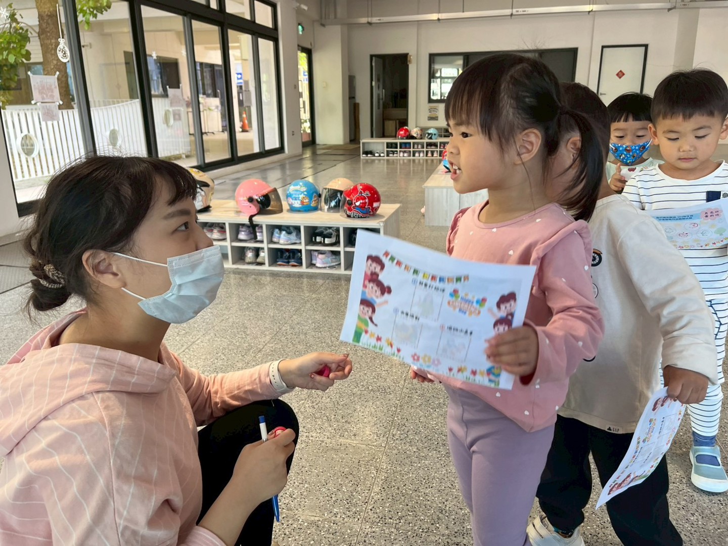 歡慶兒童節,新竹國小附幼在連假前一天舉辦兒童節母語闖關活動,旨在鼓勵孩子於生活中活用母語,並且養成主動與師長、同儕打招呼的好習慣,完成(1)我會打招呼(2)水果派對(3)唱跳小高手共三個關卡後,就能兌換兒童節禮品!祝所有孩子兒童節快樂、平安健康幸福地成長!