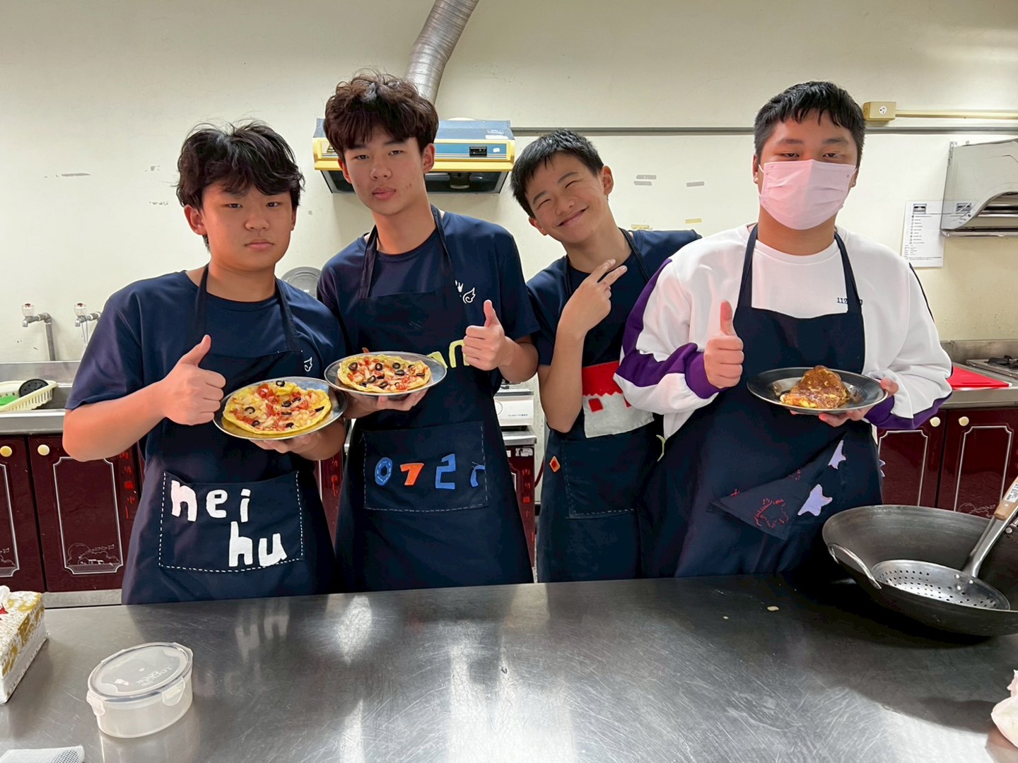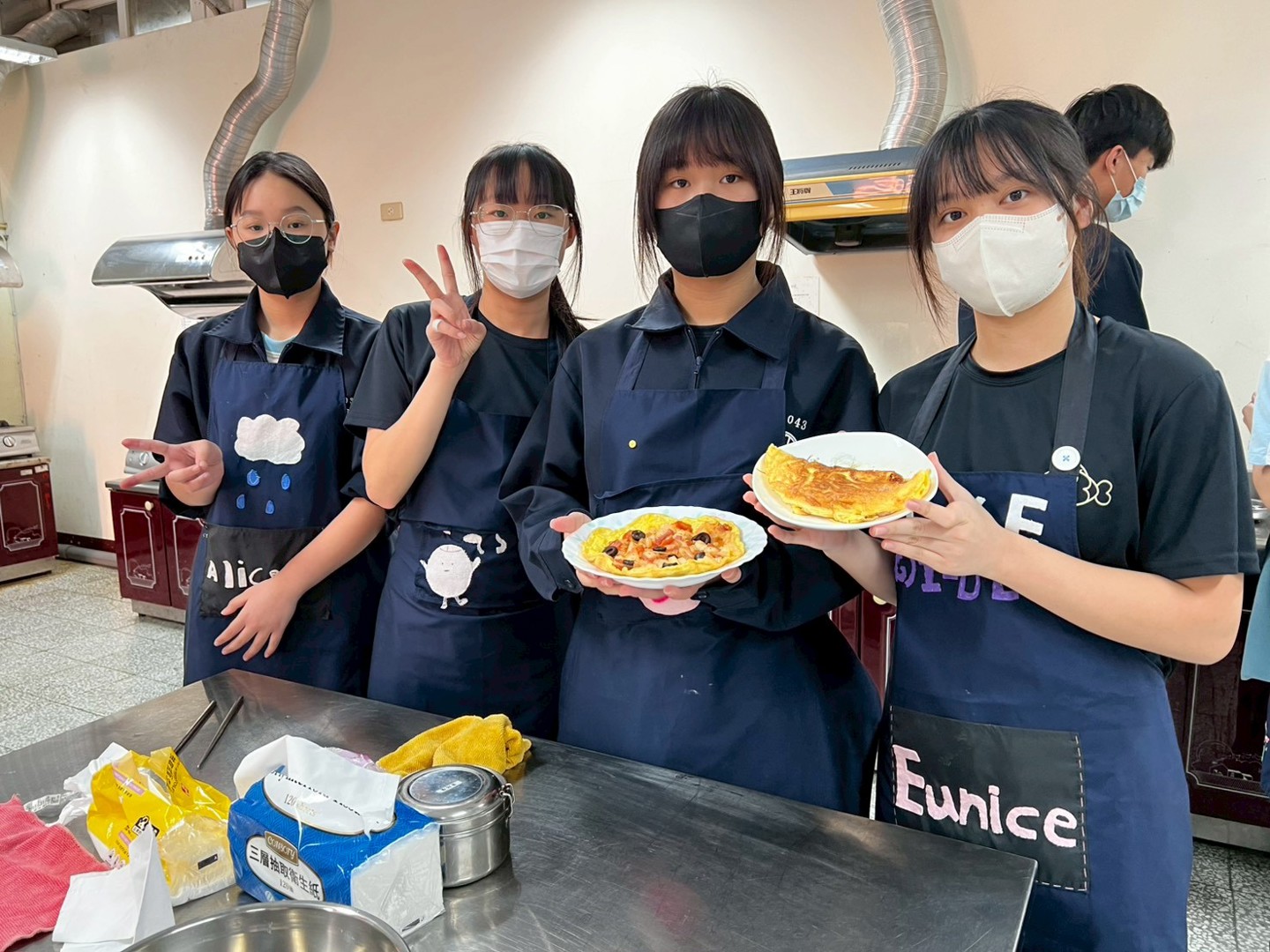 學生們在老師的示範與指導下,體驗製做美味的餐點。來看看學生們的成果吧!