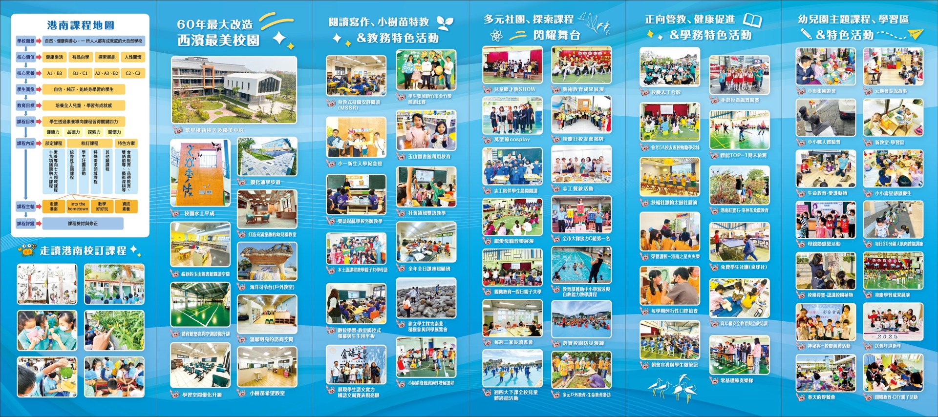 港南團隊繼推出「新校園雙面六摺頁」後,再次以心設計「雙面六摺頁學校簡介」,完整呈現校園重新打造後的環境升級與學校特色。