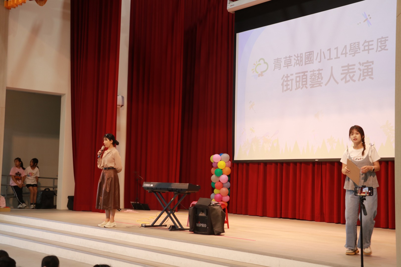青草湖國小一年一度兒童節街頭藝人才藝表演於4月2日熱鬧登場,共有10組表演團隊輪番上台,展現精湛才藝,為全校師生帶來一場精彩絕倫的視聽饗宴。