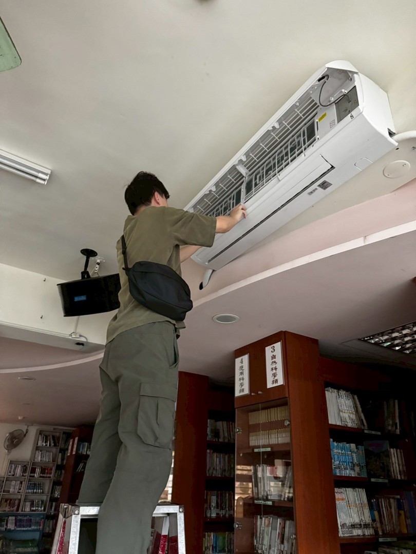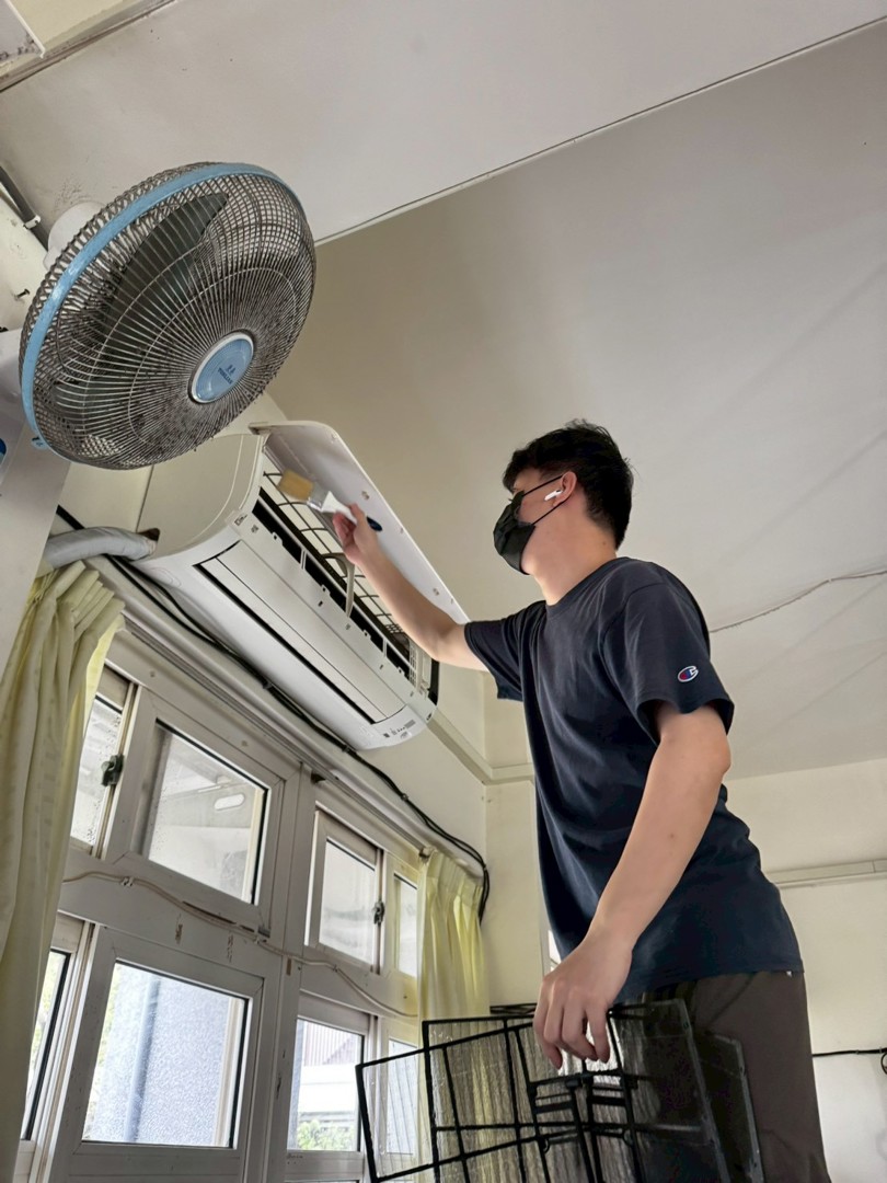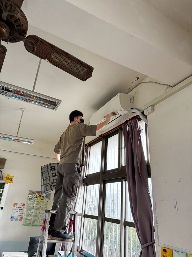 最疼惜學子的總務處為了提供教室舒爽的環境,從上周假期就安排了廠商進行全校冷氣機濾網的清洗並檢查電力設施及確認冷氣功能是否正常,提供更舒適的教學環境!也特別感謝市府教育處積極推動「班班有冷氣」政策,營造優質學習環境。嘉惠民富學子!感恩~