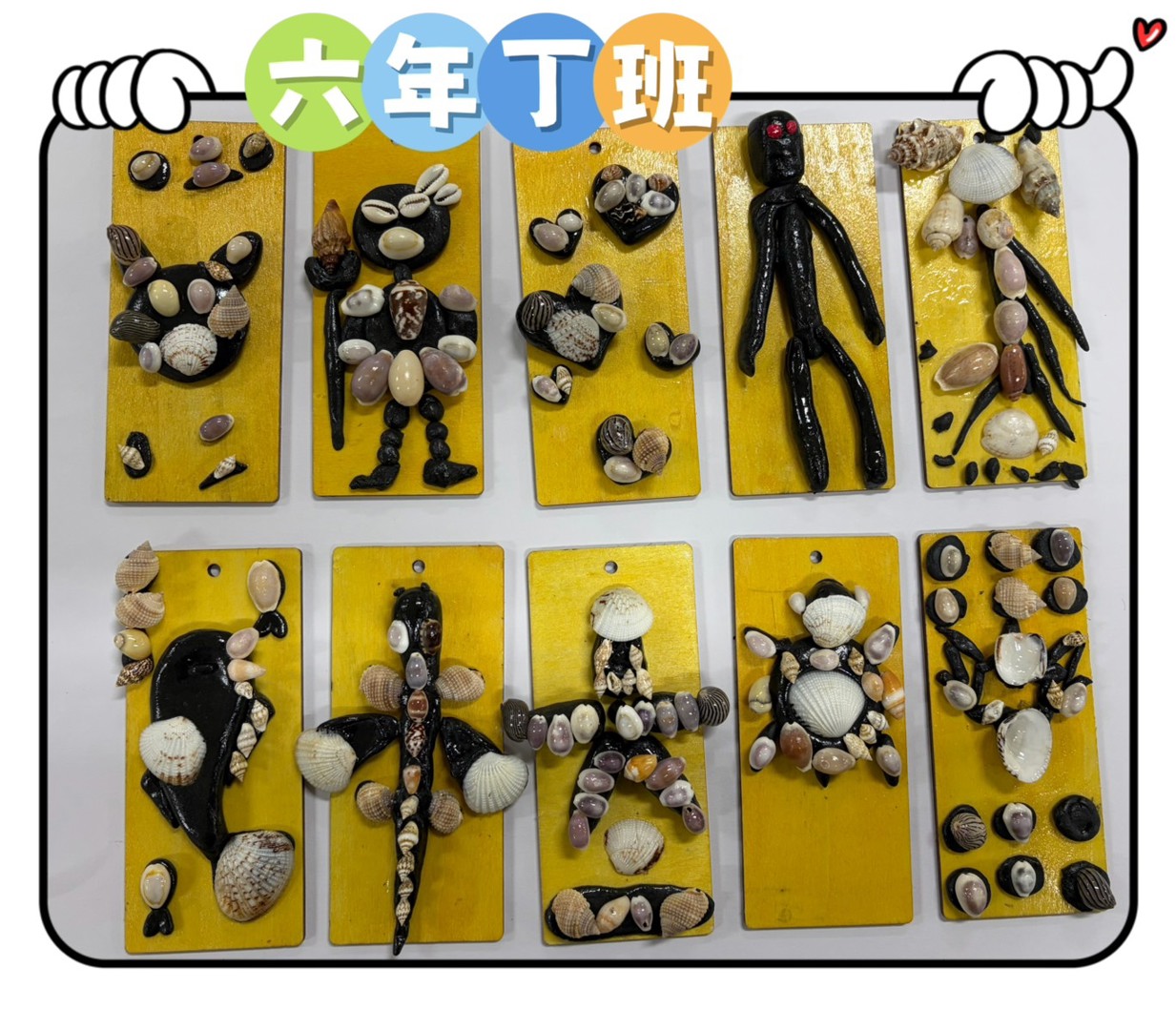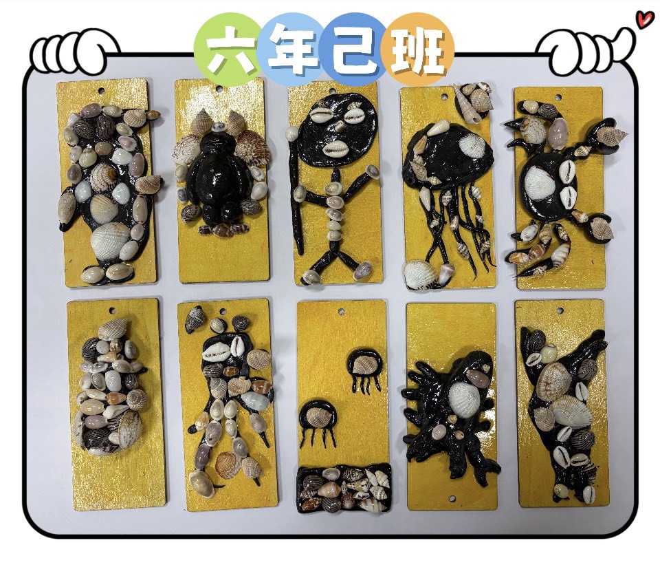 這次課程結合「貝殼+黏土」的複合媒材,孩子們從觀察自然紋理開始,發想主題、畫草圖,再一步步把靈感變成獨一無二的造型掛飾。