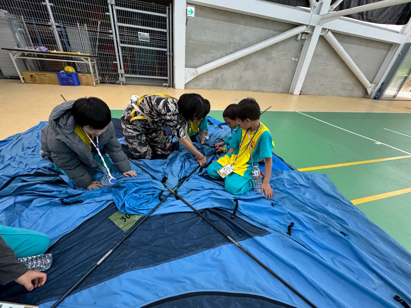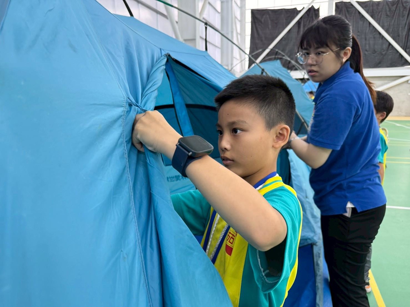 由於缺乏經驗,許多小組出現了「多頭馬車」的情況:有人急著插營柱,有人卻還在鋪地布。然而,正是在這種碰撞中,學生開始意識到:若不建立共識,帳棚永遠立不起來。