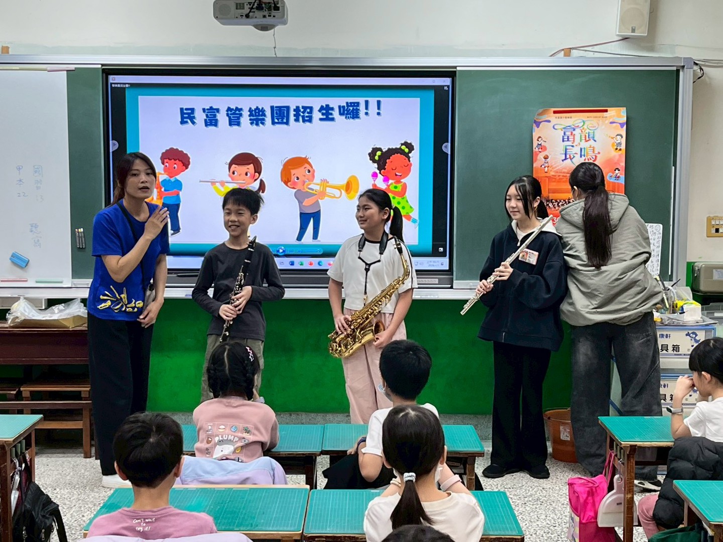 管樂聲在走廊輕輕響起,為校園帶來一股活潑而溫暖的氣息。近日,學校管樂團展開了特別的招生活動,由熱心的志工家長帶領著管樂團員,走進二年級各班,進行面對面的宣傳與分享,讓更多同學認識音樂的魅力。