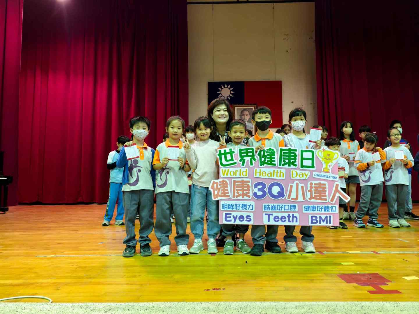 4月9日的學生朝會上,大庄國民小學舉辦了一場別具意義的頒獎典禮。由健康中心品汶護理師用心規劃的「健康3Q小達人」活動隆重登場,並搭配了世界健康日(World Health Day)的主題進行表揚。