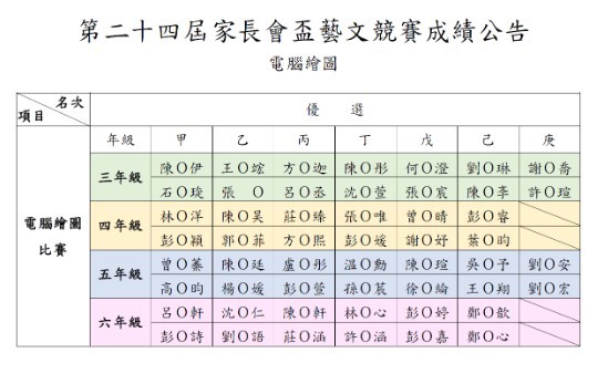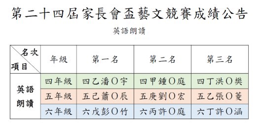 家長會盃藝文競賽成績最新獲獎名單出爐!