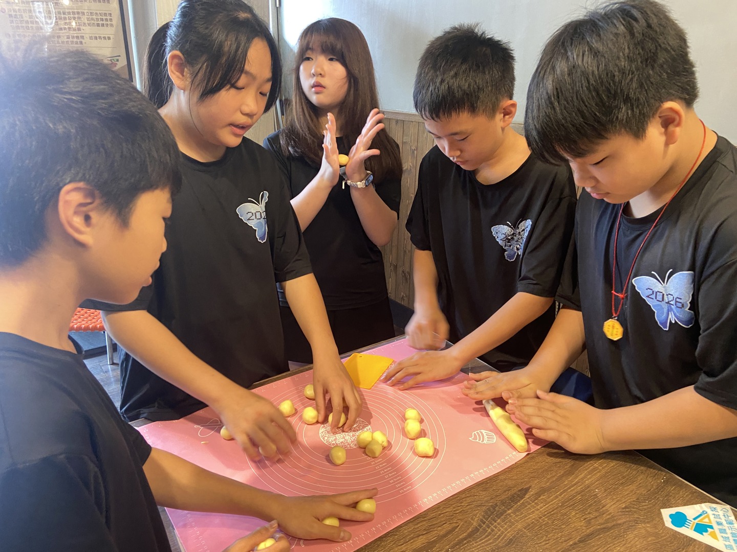 隨後,大家紛紛挽起袖子,在案板前親自挑戰製作核桃酥。從細心揉製餅乾底,孩子們專注地感受掌心中麵團的變化,每一步都浸透著好奇與認真;緊接著,大家也嘗試用雪克杯搖製屬於自己的鮮奶茶,在茶香與乳香的融合中,體驗親手調製飲品的樂趣。