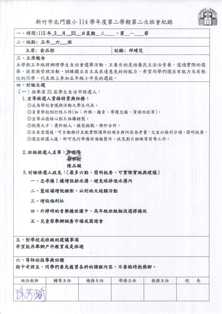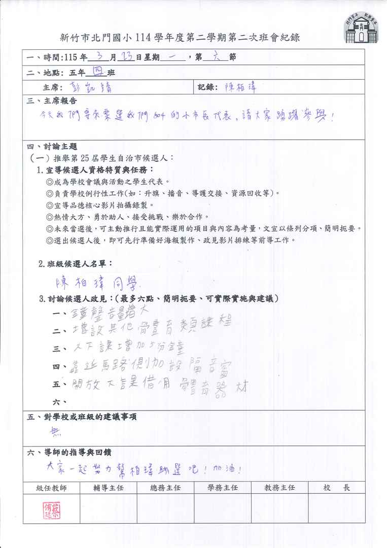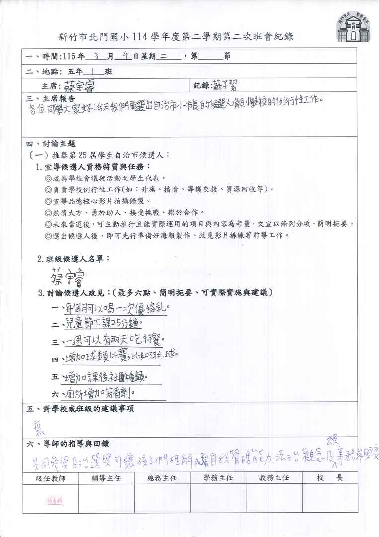 在班會過程中,學生們踴躍發言,從自我介紹到理念闡述,展現對校園事務的關心與想法。各班候選人紛紛提出具體政見,內容涵蓋校園環境改善、學生活動規劃、友善校園推動等多元面向,充分體現孩子們對學校生活的觀察與期待。