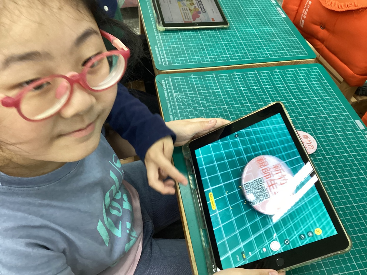 此項創意設計源自一次課堂中的有趣經驗。資訊組雅雯教師在指導學生掃描QR Code時,孩子們一打開相機,竟然不小心變成「拍老師」,一邊拍還一邊興奮呼喊,逗趣又專注的模樣,讓老師靈機一動,決定把QR Code變成可以隨身攜帶的胸章。學生只要將胸章別在書包或放進鉛筆盒,隨身帶著學習超方便。