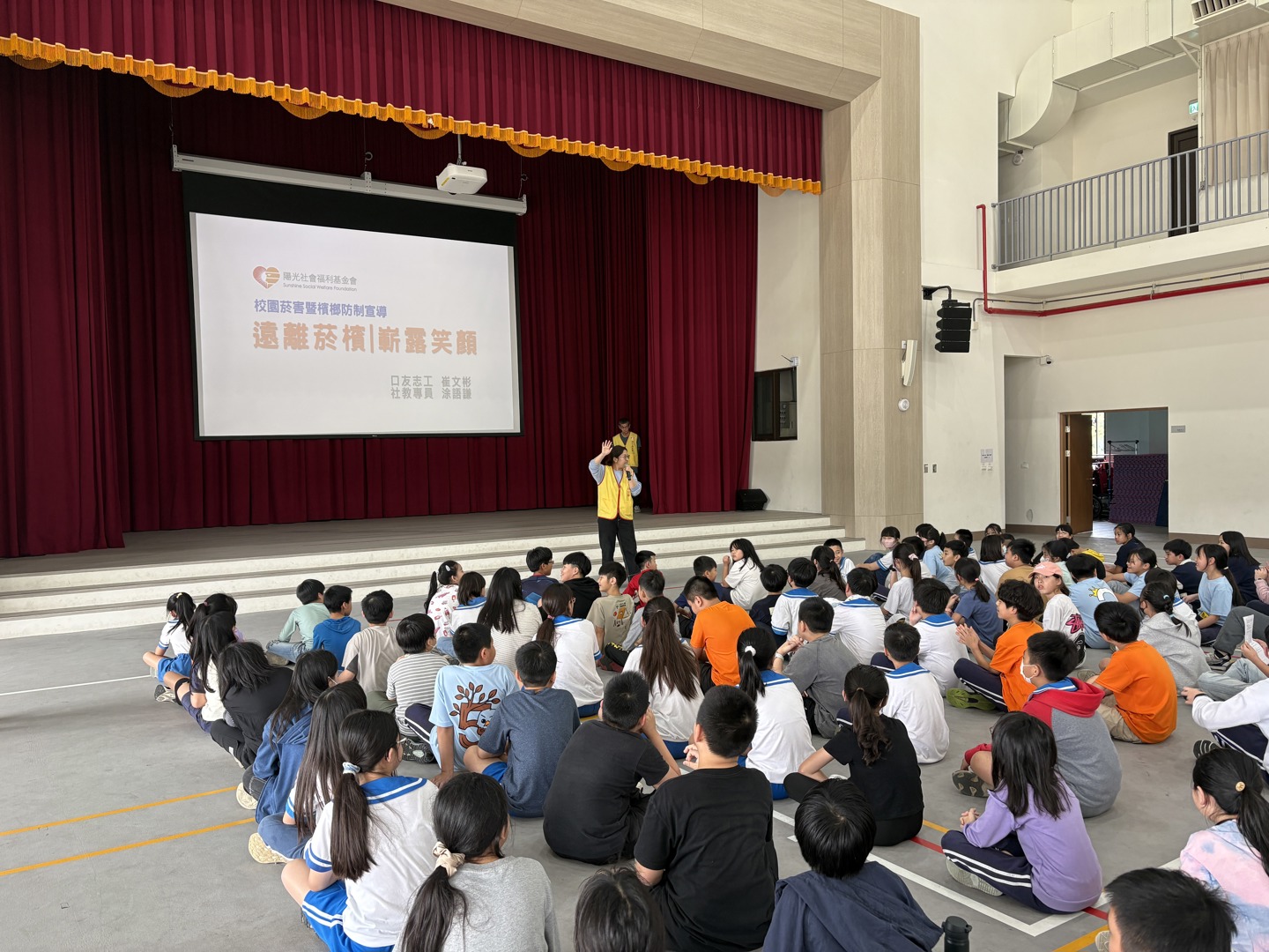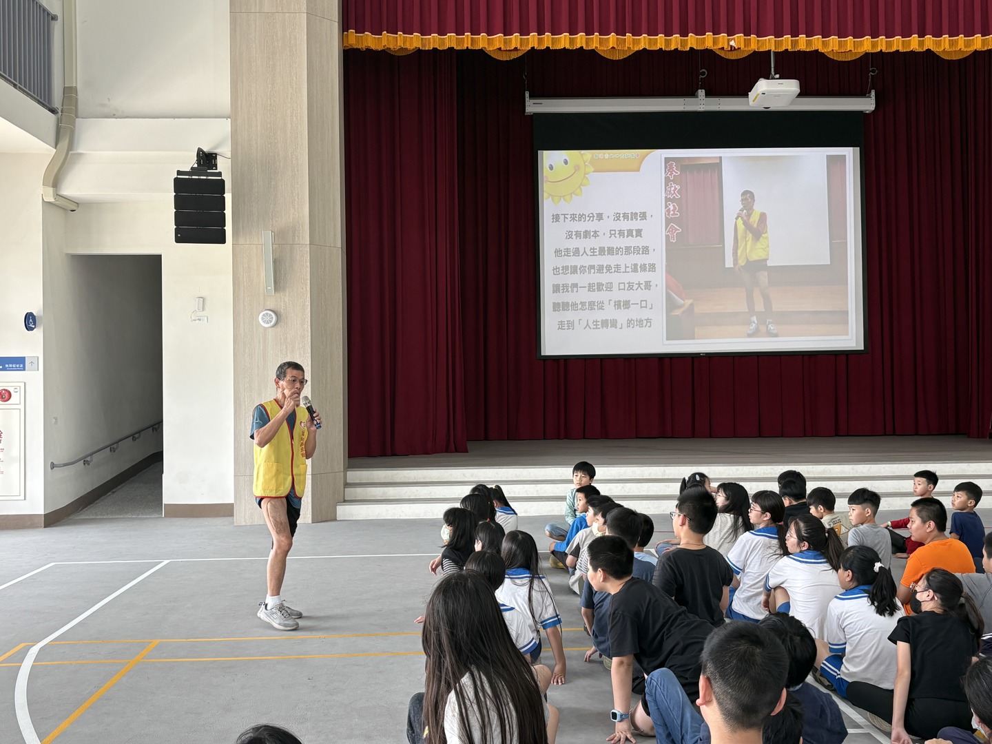 4/9(四)邀請到陽光基金會的口友志工和社教專員到校舉辦反菸拒檳演講,讓五年級的學生們了解口腔癌的形成原因以及菸、檳、酒對身體的危害,更透過口友志工自身的口腔癌治療經驗,讓學生了解要好好愛護自己的身體,勇敢拒絕抽菸、吃檳榔或喝酒的邀約。