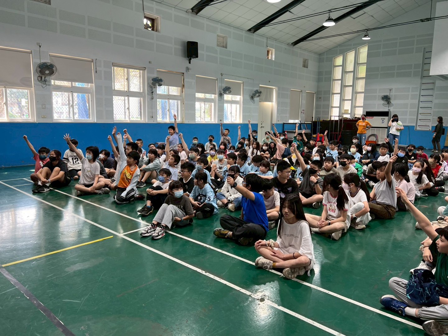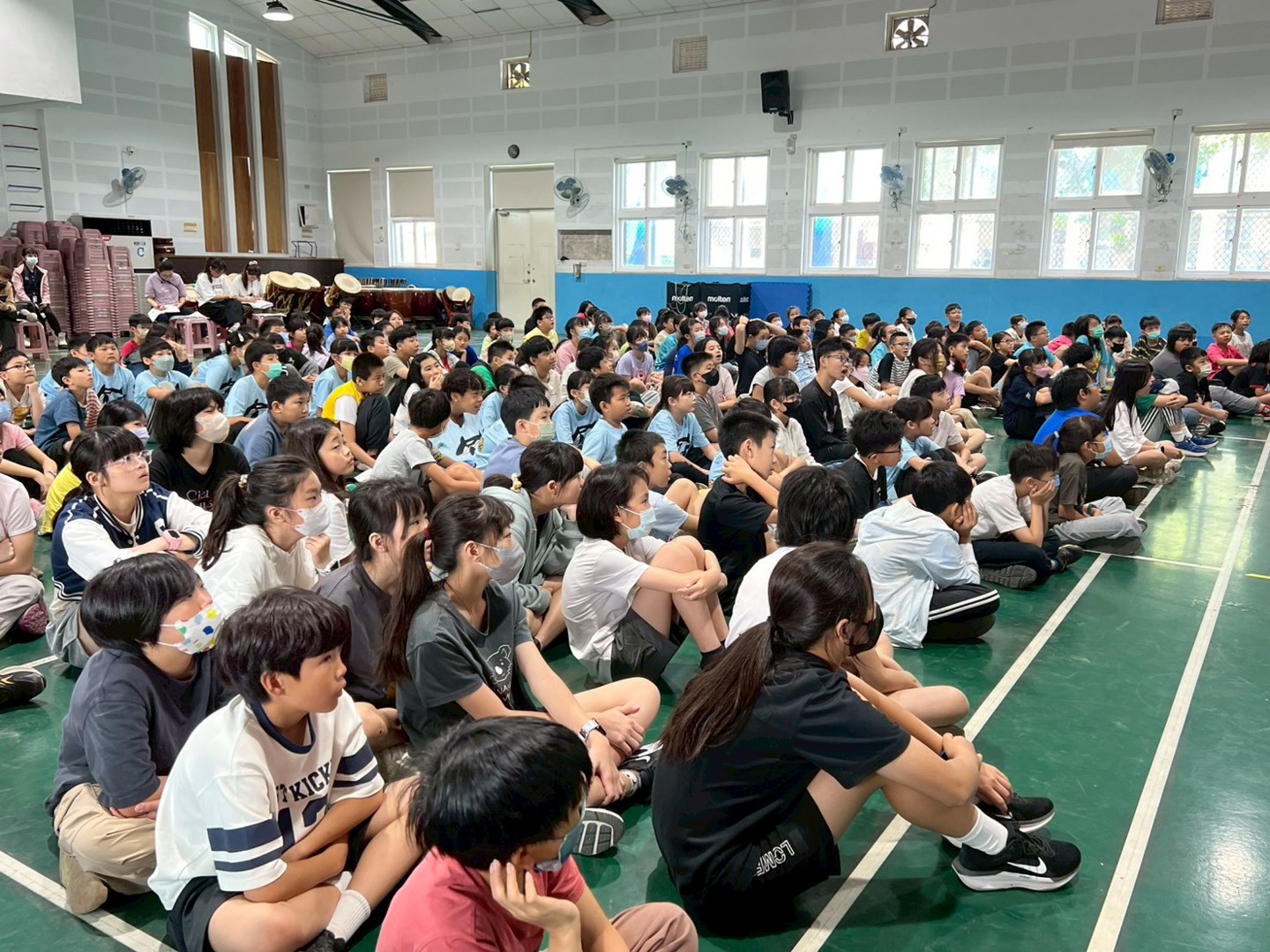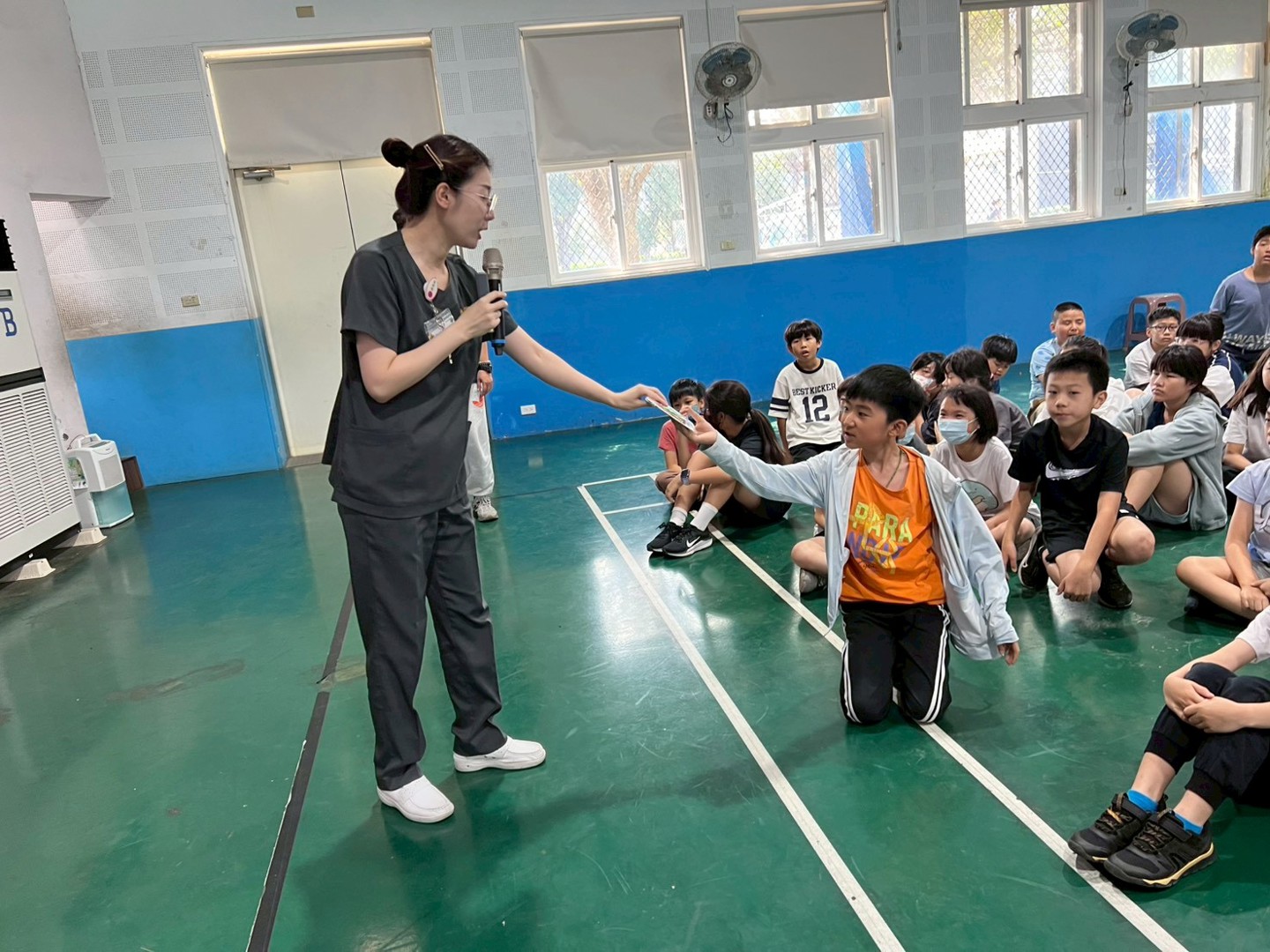 除了知識傳遞,現場更安排了有獎徵答。面對各種情境下的問題,南寮國小的孩子紛紛舉手搶答,現場氣氛踴躍,搶答成功的孩子也開心的拿到護理師特別準備的杯墊小禮物。
