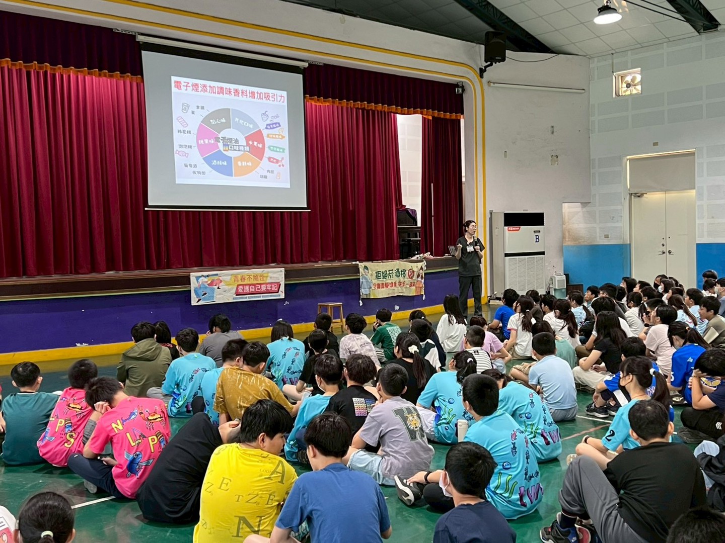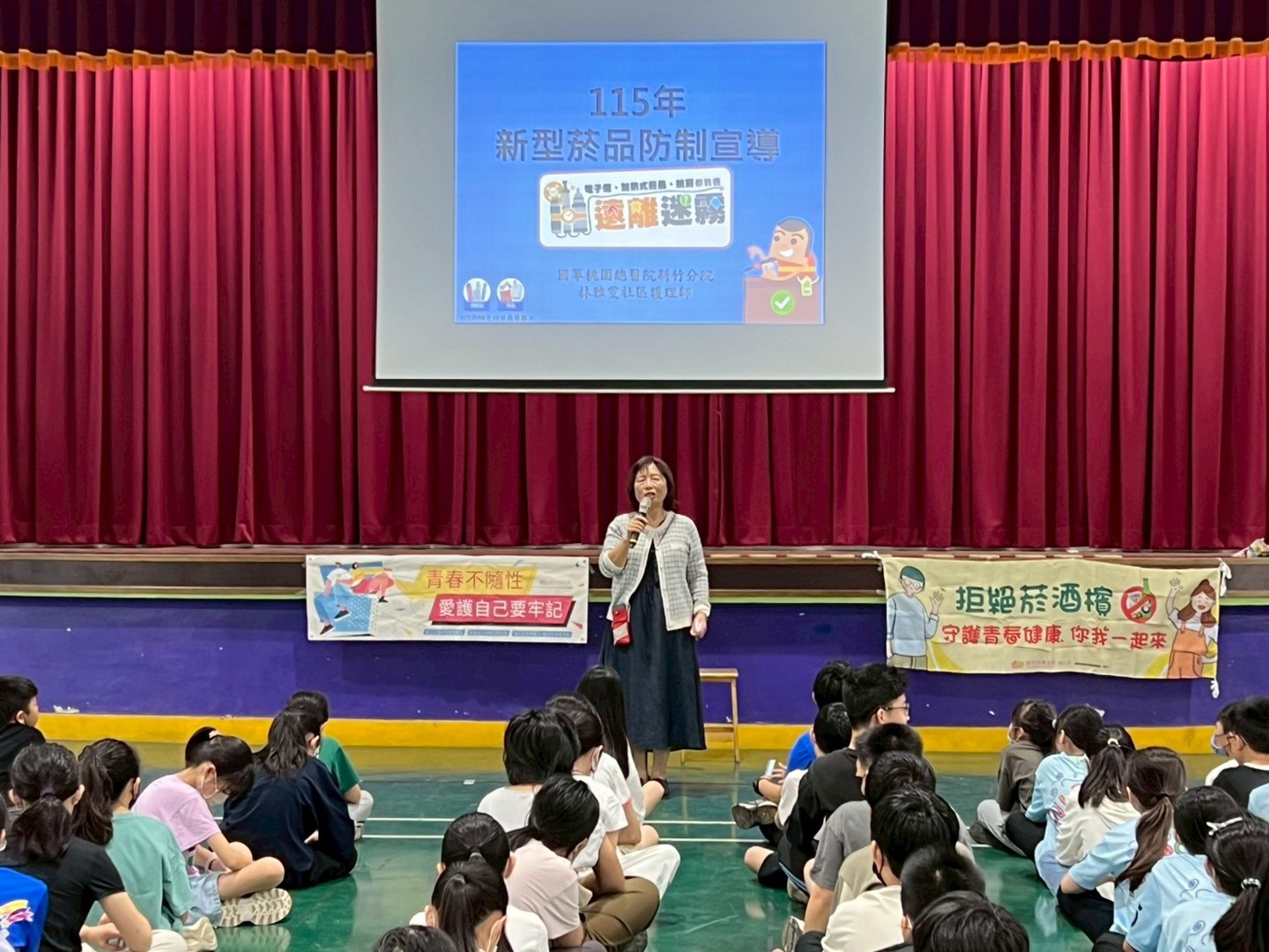 為了讓小朋友看清菸草的真面目,國軍醫院的護理師特別準備了生動的視覺教材。當看到因吸菸造成身體變化的後果,台下五年級的同學們紛紛瞪大眼睛,深刻感受到菸品對身體帶來的負擔。