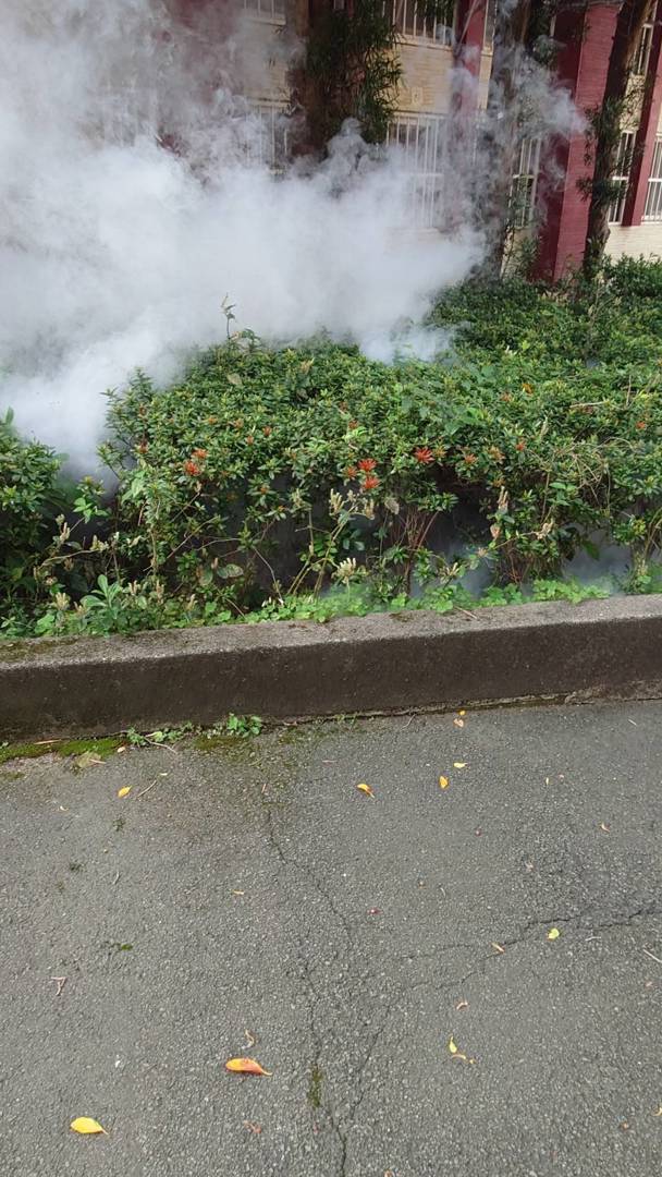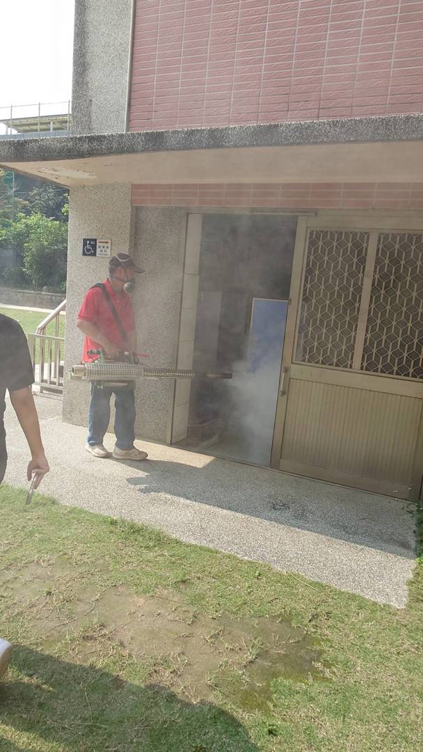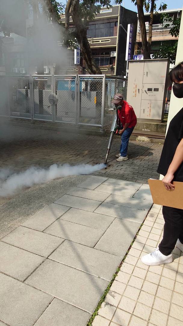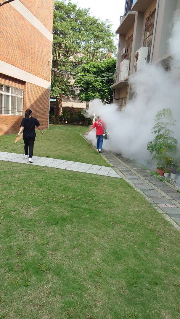 此次消毒作業由專業人員執行,以符合安全規範的藥劑,對各棟樓層的廁所間、地板縫隙、排水溝及校舍周邊植栽底部進行噴藥處理