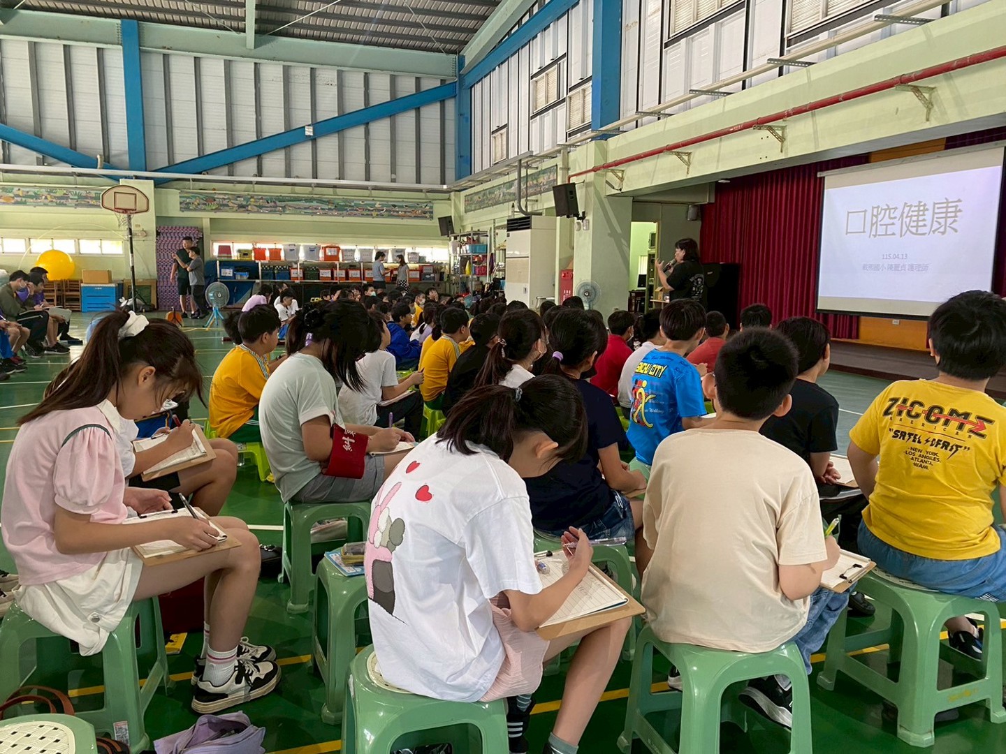115.04.13 今日學生週會中,健康中心特別邀請載熙國小健康中心 - 麗貞護理師入校進行宣導,以「兒童口腔健康」為主題,教導孩童在日常生活中落實口腔保健的重要觀念。