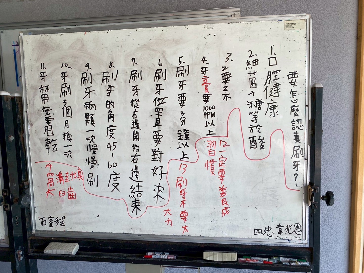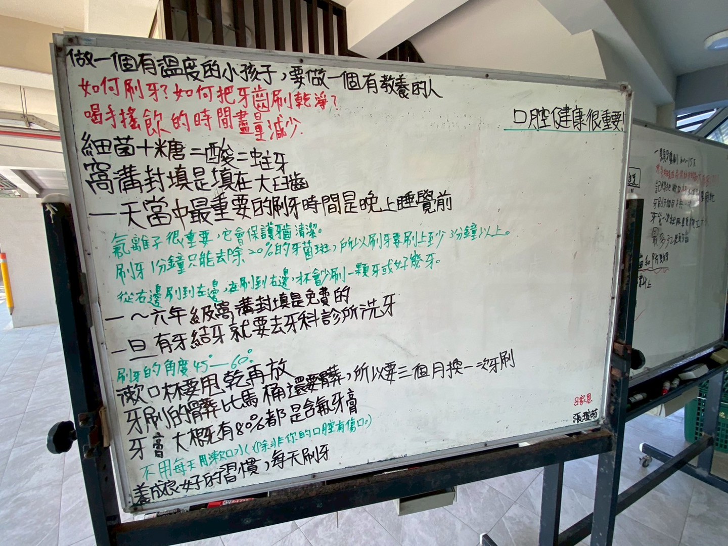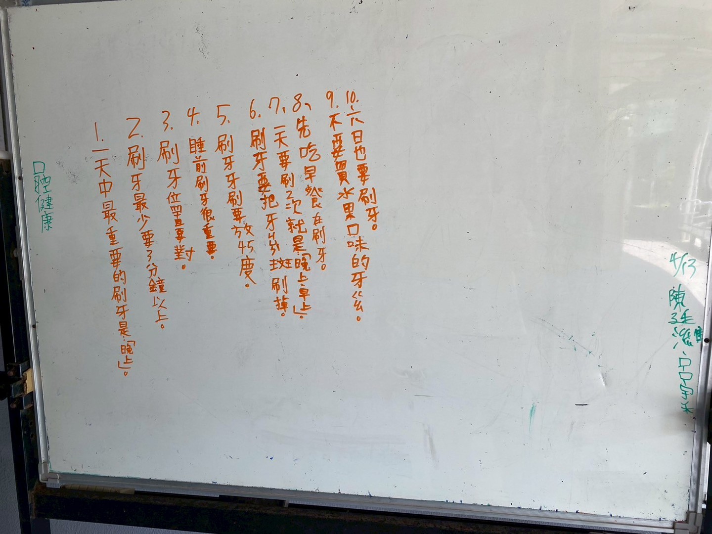 活動過程中,麗貞護理師以貼近孩童的角度出發,深入淺出地說明維持牙齒健康的各項重點,逐一解答孩子們的疑問。內容包含兒童與成人的牙齒數量差異、如何選擇合適的潔牙工具,以及正確的潔牙方式,幫助港南孩子們建立良好的口腔保健習慣。