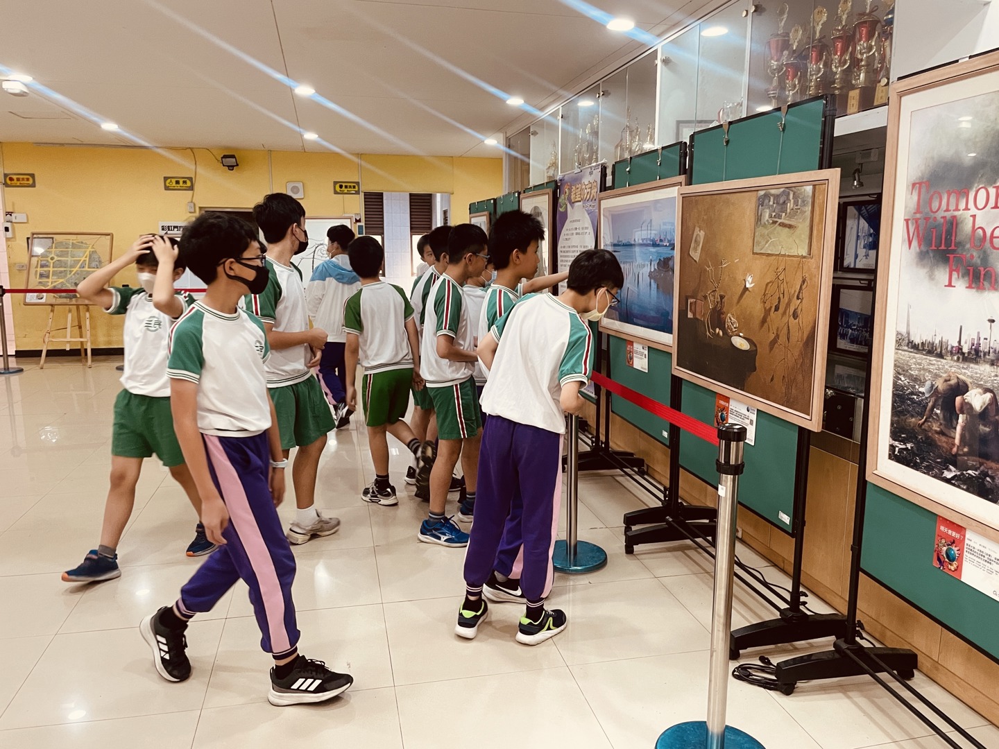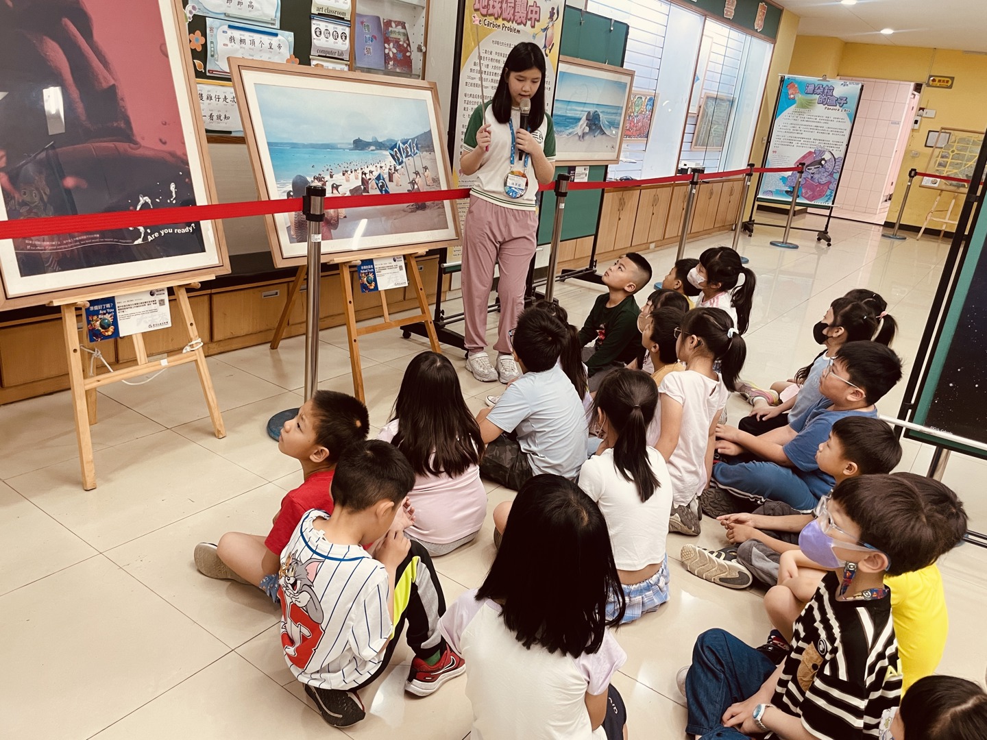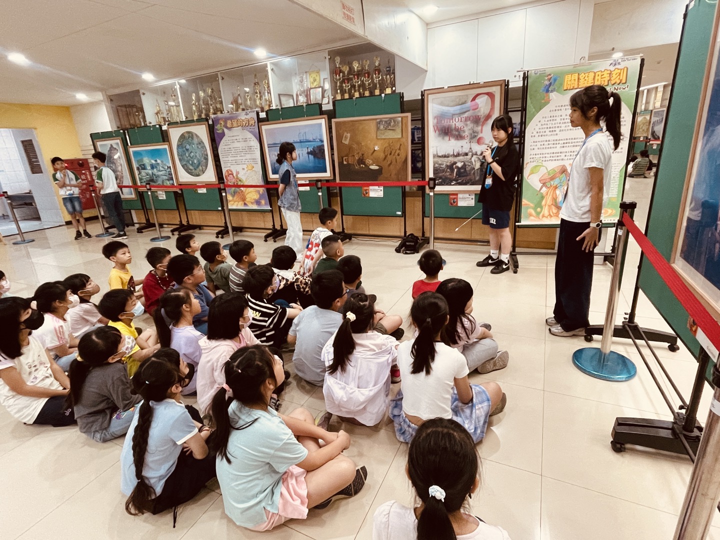 導覽過程中,學生們踴躍參與互動,主動分享自己印象最深刻的展品,有的孩子被作品中對未來城市的描繪所吸引,有的則對環境保護議題產生共鳴,紛紛表達自己的觀察與想法,透過彼此的分享與交流,不僅加深了對作品的理解,也讓學習更具層次與溫度。
