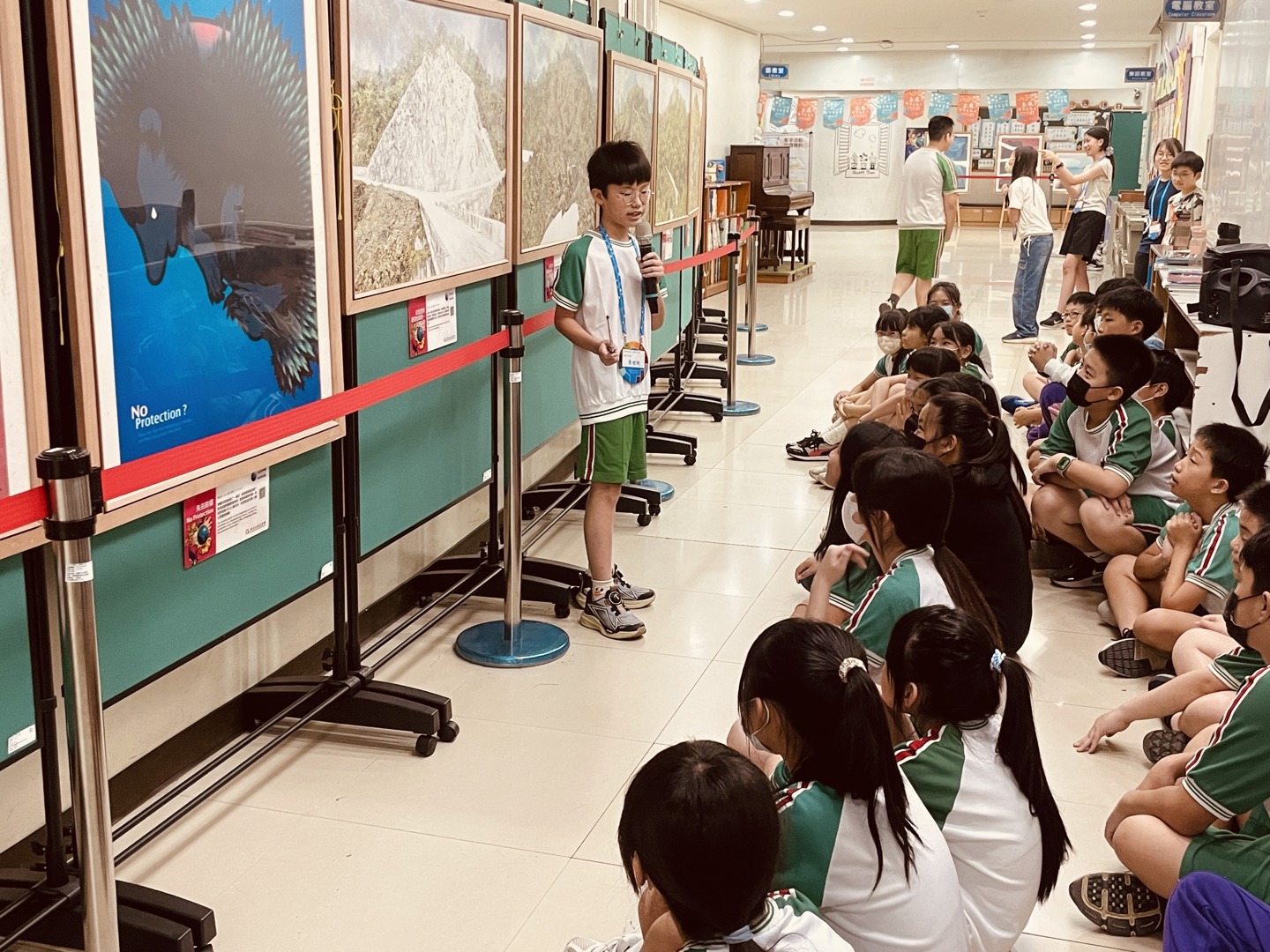 中午時段由610班接續進行導覽活動。孩子們同樣展現出良好的學習態度,除了專心聽講外,也能針對展品提出具體的問題與看法,展現出主動思考與表達能力,導覽過程中,大家對於環境議題、科技發展與人類未來的關係產生濃厚興趣,討論熱烈。