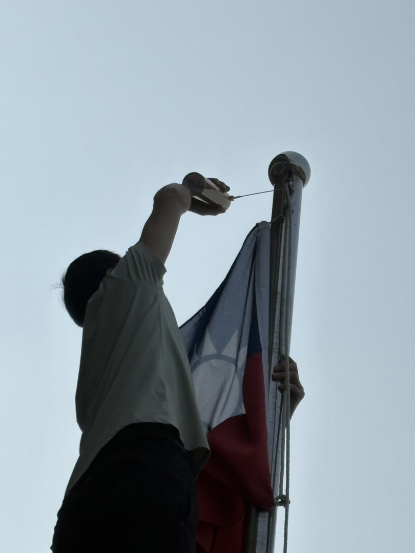 上週五學生朝會升旗時,因國旗桿滾輪太乾有奇怪聲音顯得突兀