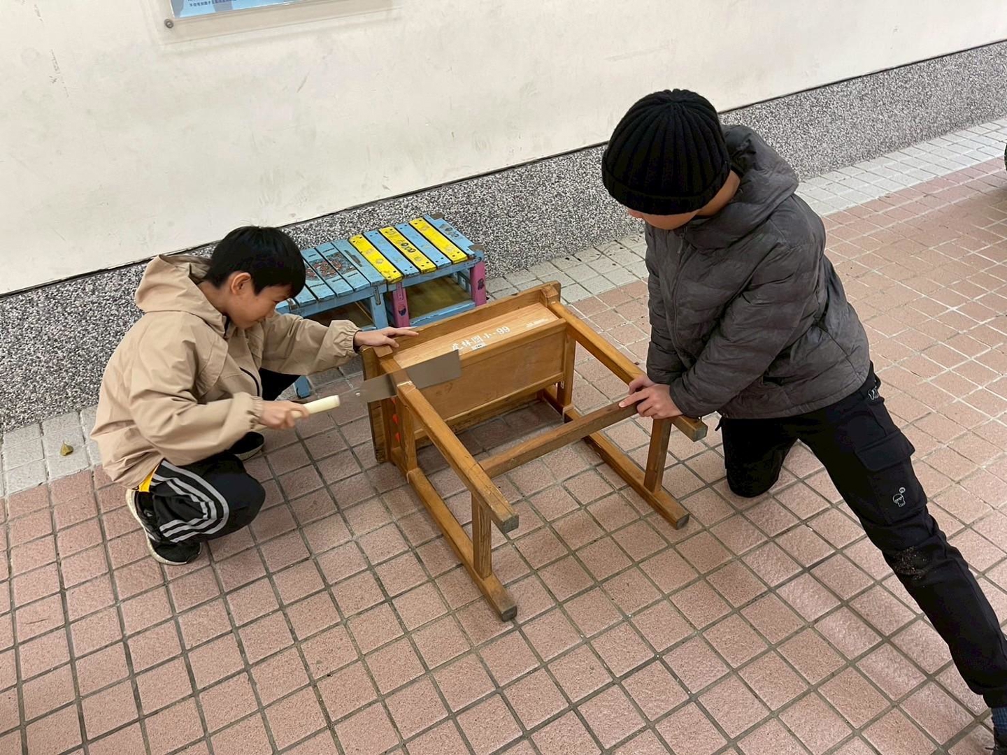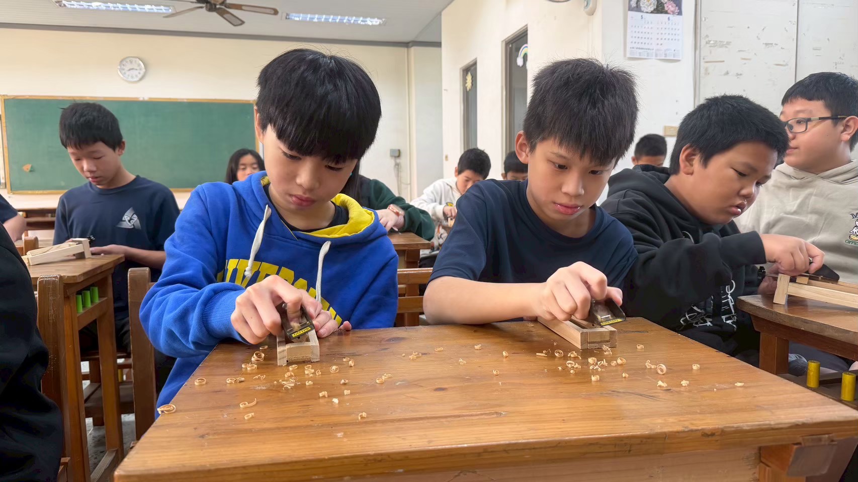 這項計畫不僅讓閒置課桌椅重獲新生,更是一場結合工藝與環境教育的深度學習。孩子們看著每日陪伴自己的課桌椅,轉變為手中的湯匙與餐具,從中深刻體會「萬物皆有用」的價值。