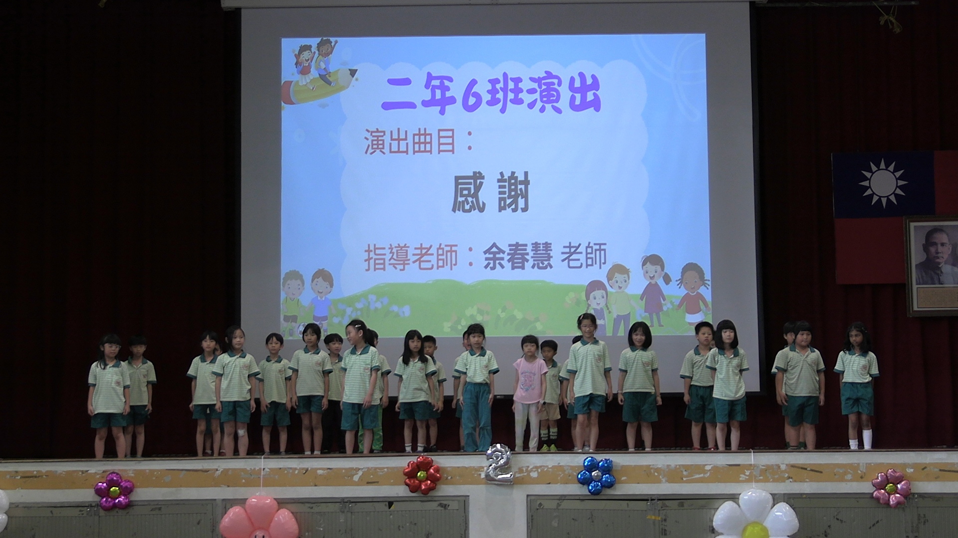 感謝賴雲鵬校長開場及結束致辭,並全程觀賞同學們的演出。也感謝辛苦的家長們,在百忙之中抽空參與孩子們的成果發表會。同時感謝二年級導師們及生活音樂課余春慧老師的付出及指導,讓二年級的小朋友們在課程活動當中,學習同儕合作及上台表演的膽量,展現音樂及藝術學習的成果,精彩萬分!