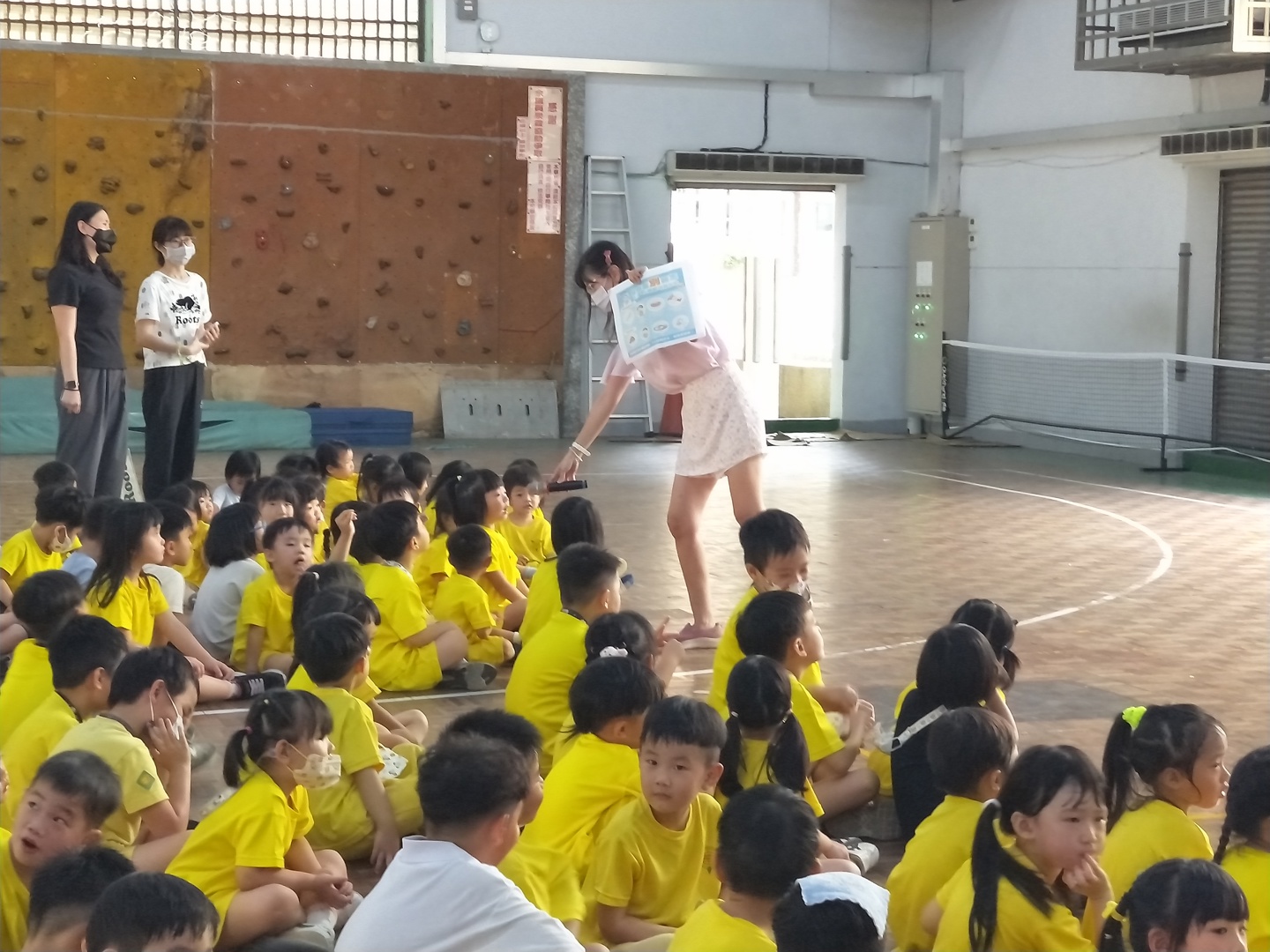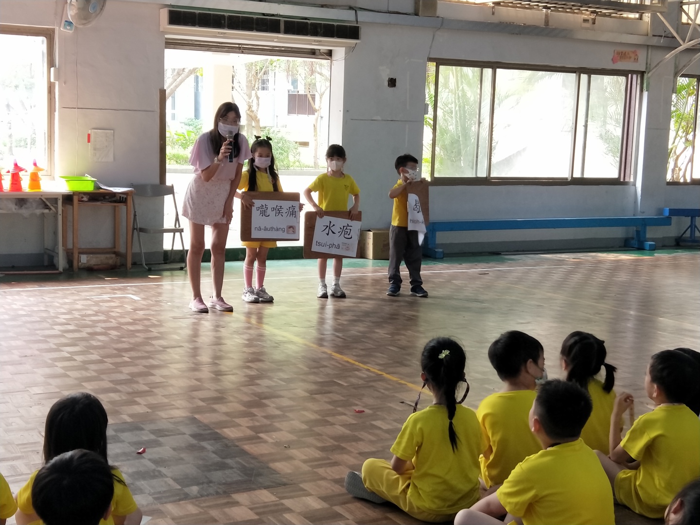 今天週三活動宣導主題是腸病毒宣導,先利用猜謎方式讓孩子認識腸病毒的特色,接著透過海報 討論讓孩子更加了解腸病毒的症狀 傳染途徑及預防.也一起念嚨喉痛 水疱 歇睏等母語語詞.動動身體,跳完病毒退散及咻咻蹦歌曲,還挑戰打擊病毒體能遊戲,學習起立即蹲下的協調動作,真是開心的一天!