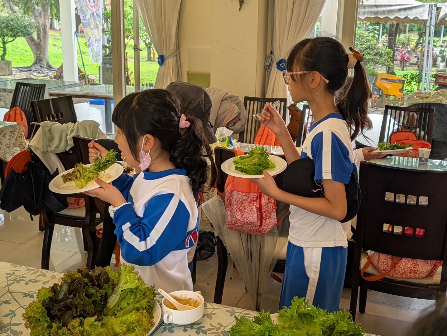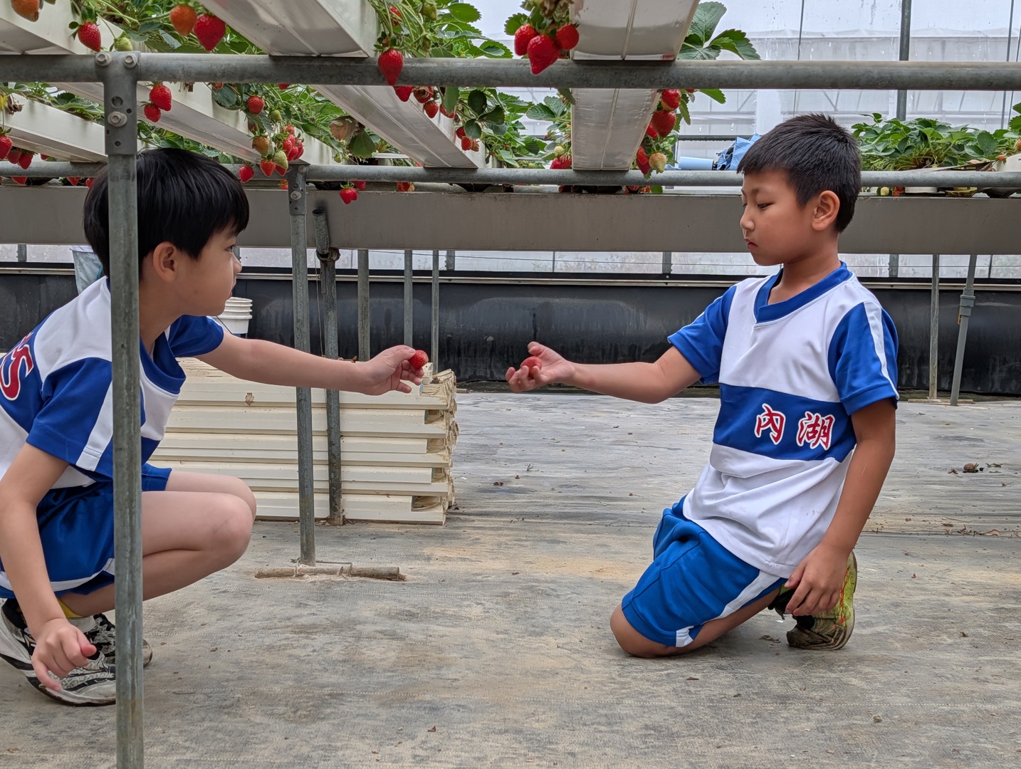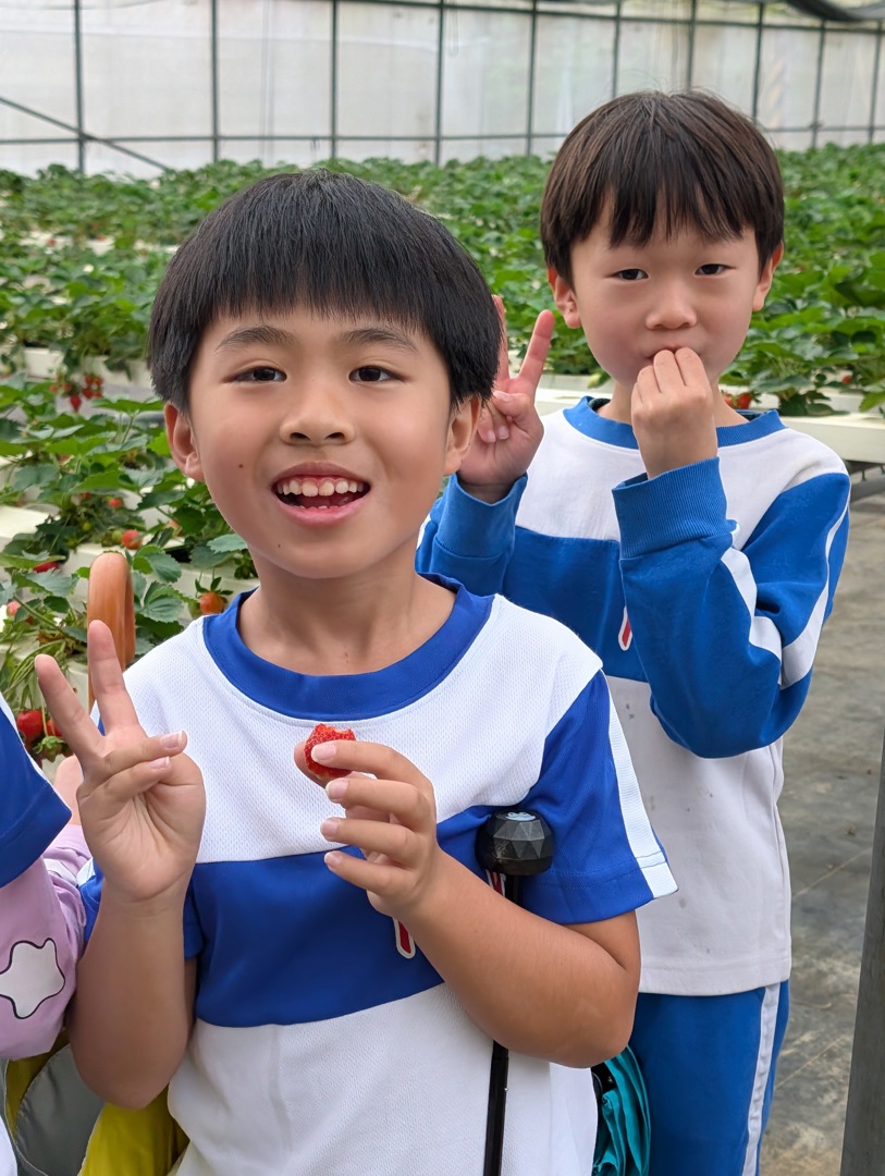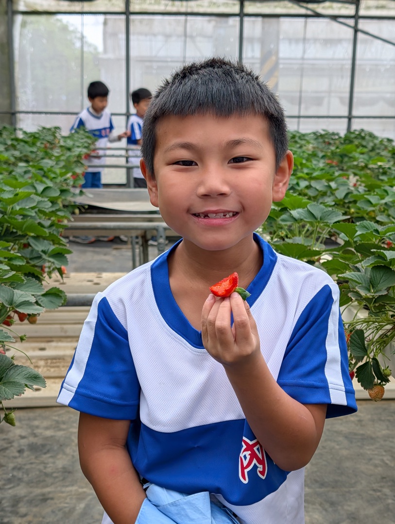 115年04月01日,今天開始兒童節系列慶祝活動,一早欣賞完才藝達人秀的班級團體表演後,二年級孩子們就搭車前往鄰近的綠谷沙拉生菜園進行食農主題的戶外教育活動。雖然累積了連日降雨讓地板有些積水,但今天天公作美,讓活動都順利進行。先探訪了溫室栽種的獨特技術,不同於小朋友一般想到的種植在泥土裡面,這裡的作物都是採用水耕的形式,植物的根用吸水的海棉固定以後,都利用水管管線分布的精密控制來達到無毒有機的方式,讓農作物不必擔心農藥殘留的危害。剛好遇上農場在水耕草莓上技術的突破,在今年度草莓季的尾聲,孩子們還可以享有限時草莓吃到飽的盛宴,看著鮮紅欲滴的飽滿果實填滿大家臉上的笑顏,真是難得的體驗!最後還有窯爐準備現烤的披薩,不只有基本的番茄打底,還加上草莓、鳳梨等蔬果入菜,讓孩子們吃的滿足又歡欣。這樣有得吃又見識到獨特栽種技術的好去處,讓大家都不斷說著以後也要讓家長帶著再來遊歷。