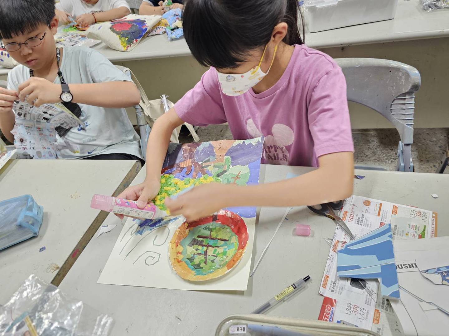 更重要的是,這堂課也融入了環保與永續的概念,讓孩子們透過資源再利用,重新看見生活中的素材之美,將藝術與生活緊密連結。