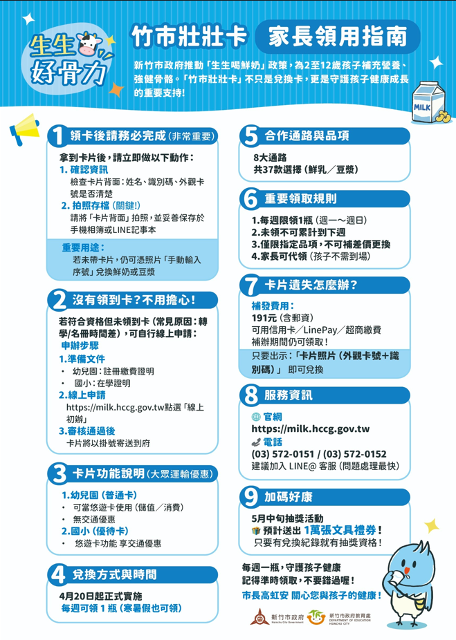 為了照顧學生的營養與健康,新竹國小已於本週二正式發放每位同學一張「壯壯卡」!這項貼心的福利計畫,讓孩子們能在成長發育的黃金時期,獲得更多鈣質與優質蛋白質。