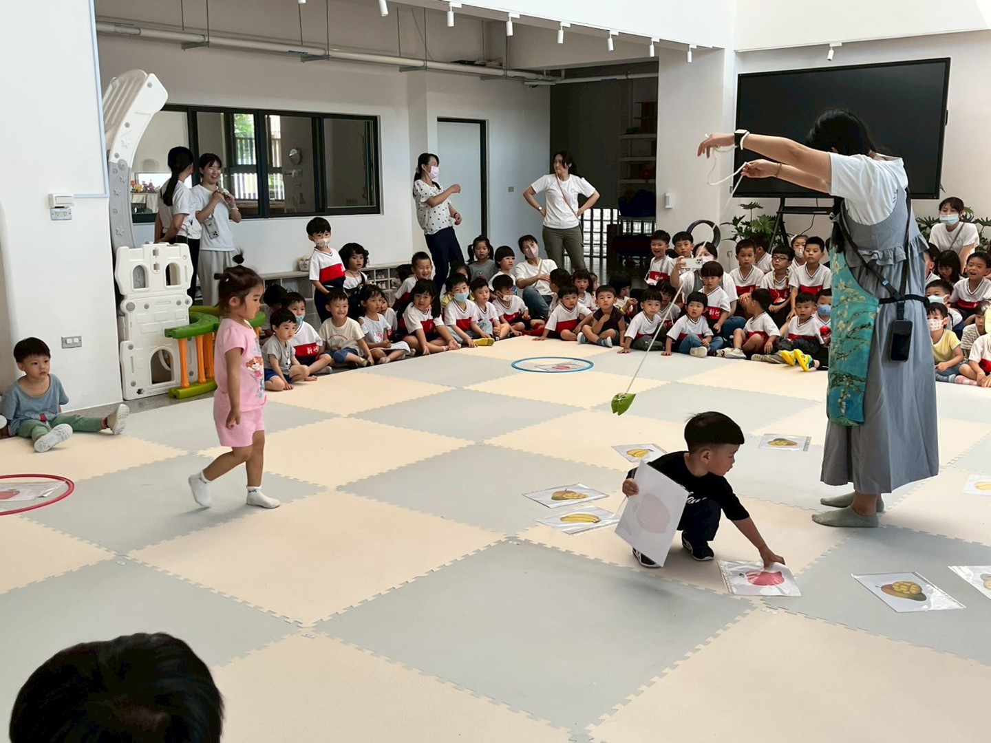孩子們在歡樂的旋律中跟著唱、跟著念,再搭配有趣的大肌肉遊戲,邊動邊念,讓客家話變得更加生動有趣,也在遊戲中加深對客家話的印象!