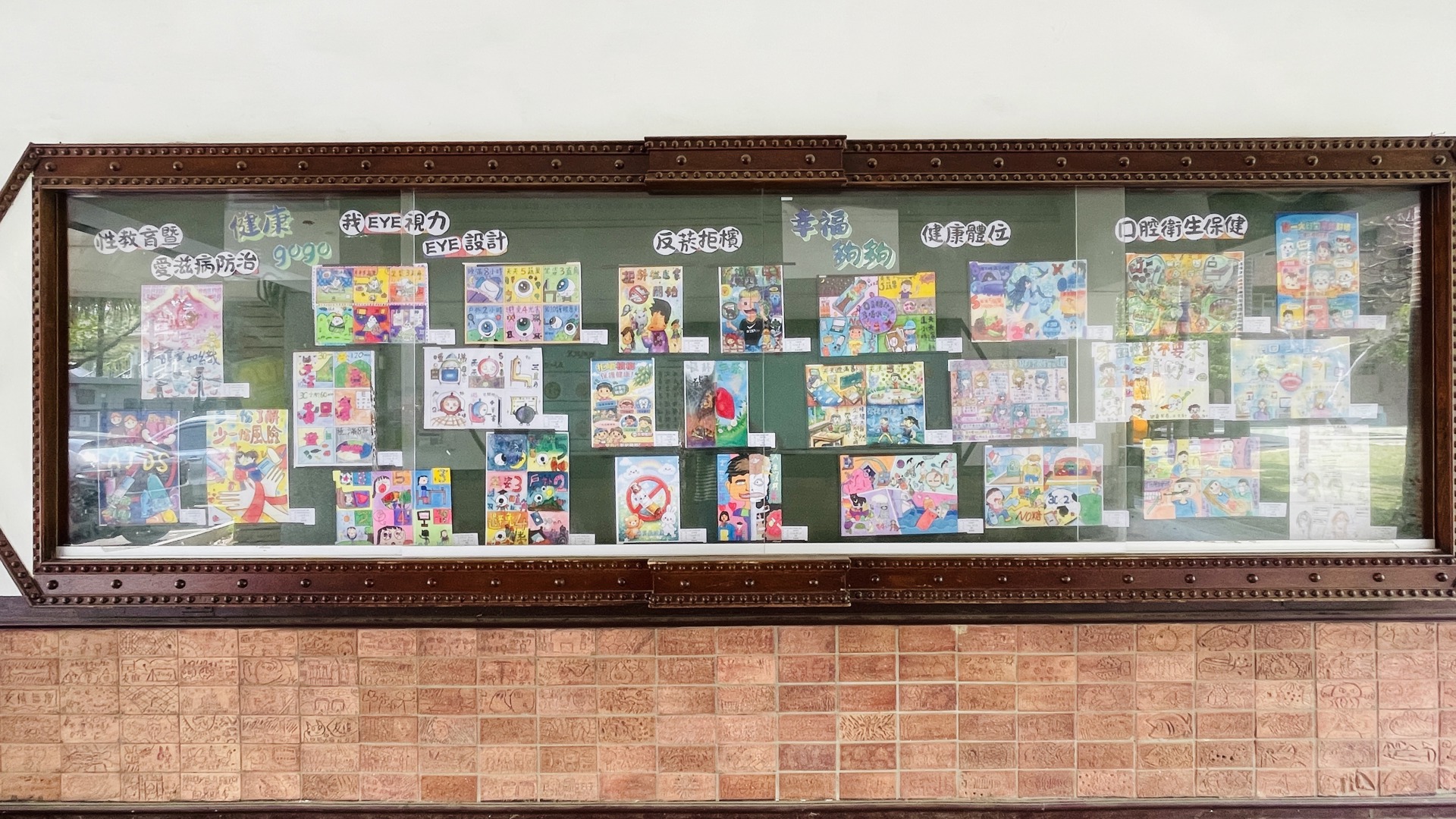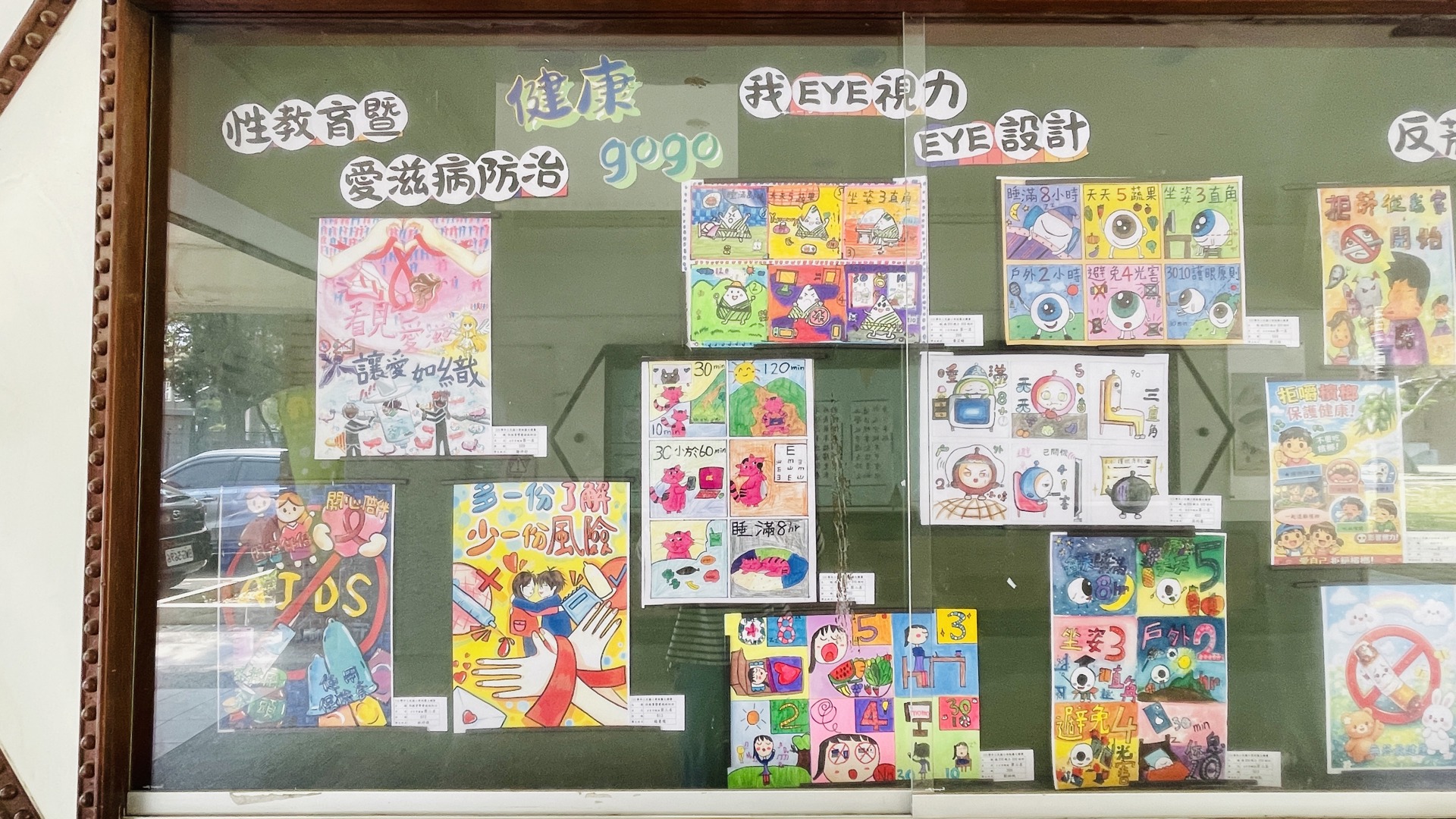 老師平日用心推動健康議題,學生們依照自己的興趣選擇主題進行創作,從護眼、口腔保健、健康體位,到反菸拒檳、正確用藥與性教育議題。每一件作品都展現出孩子們的觀察力與想像力。