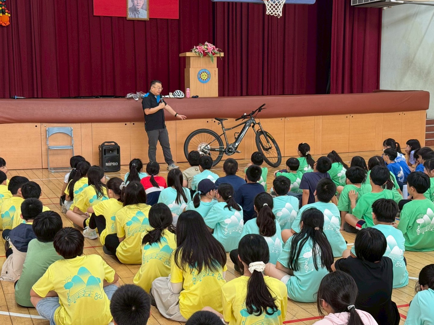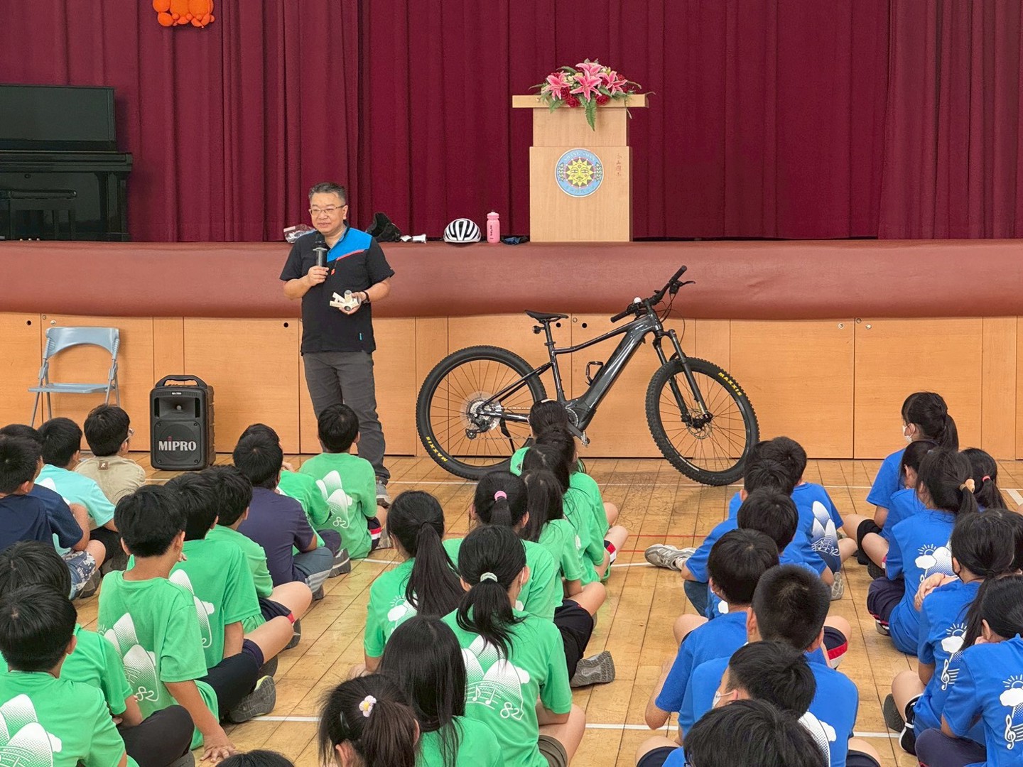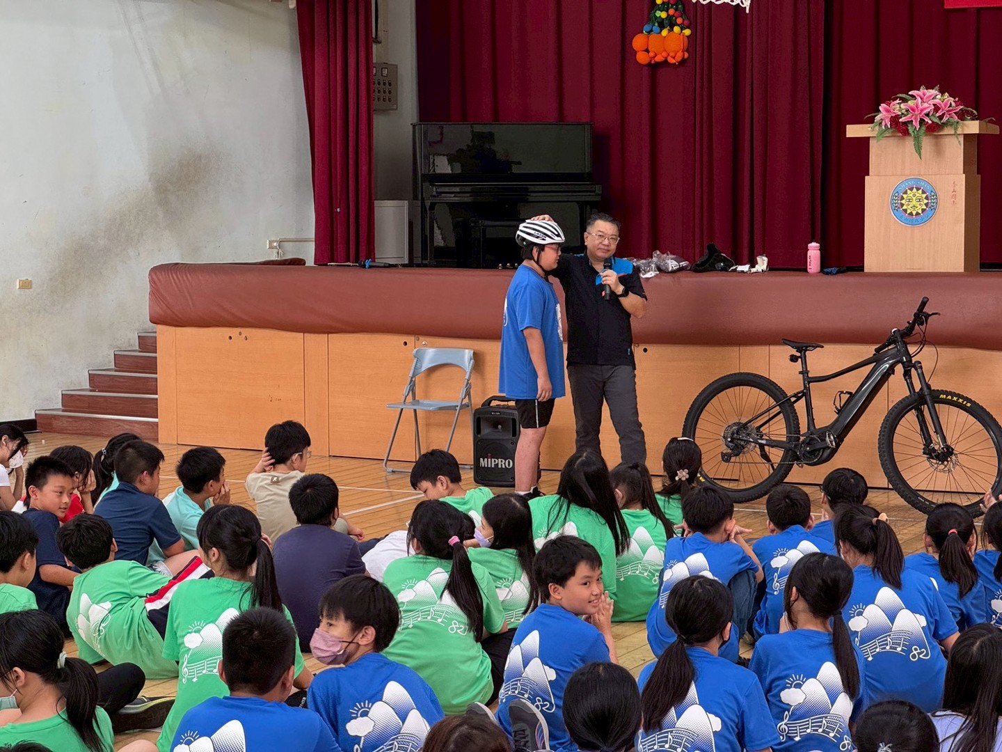張店長用輕鬆又帶點幽默的方式,帶大家認識自行車的各種知識,讓原本看似複雜的內容變得簡單好懂。過程中穿插的有獎徵答,更讓同學們搶著舉手、現場氣氛熱絡不已,笑聲與掌聲此起彼落。