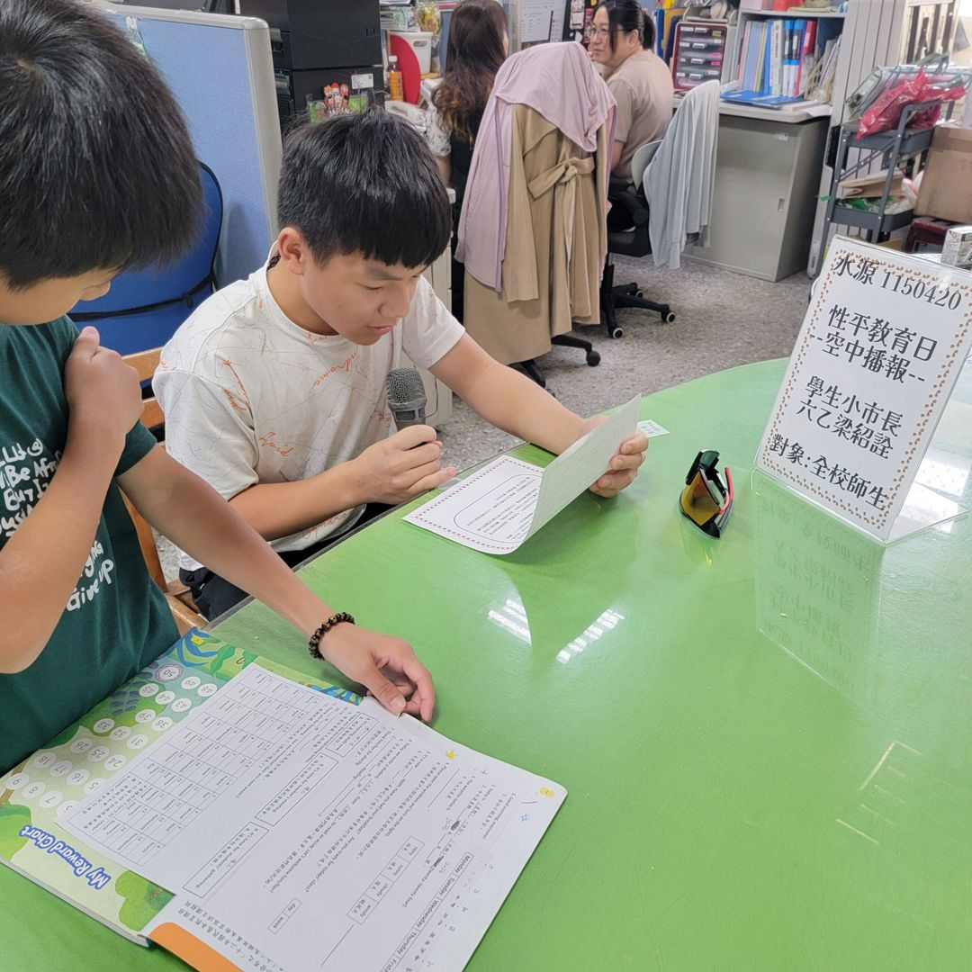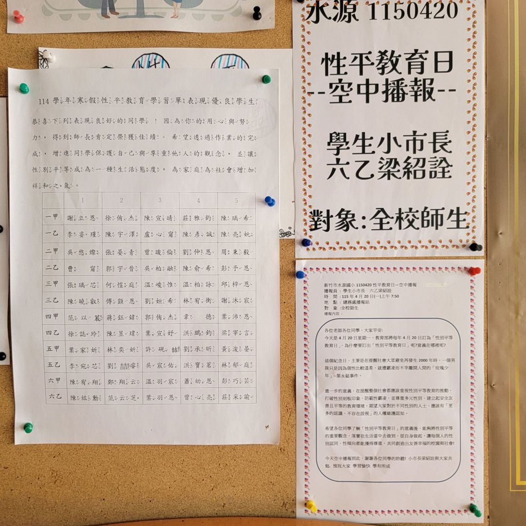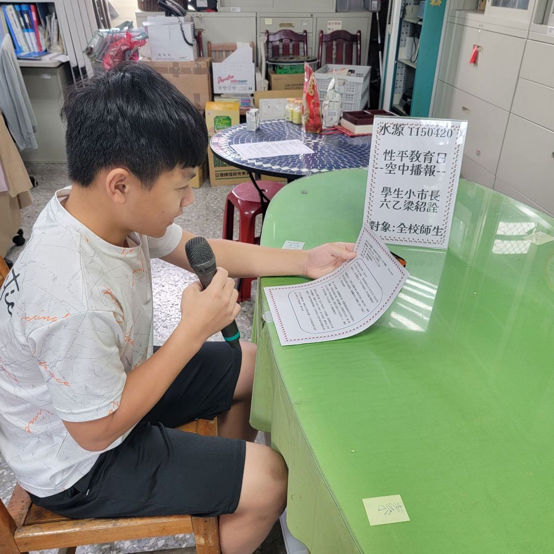今天是4月20日性別平等教育日,輔導室特別安排小市長梁同學進行一場有關-尊重多元性別-空中播報活動,分享了性別平等教育日的由來與呼籲大家一起建立友善幸福的生活環境。
