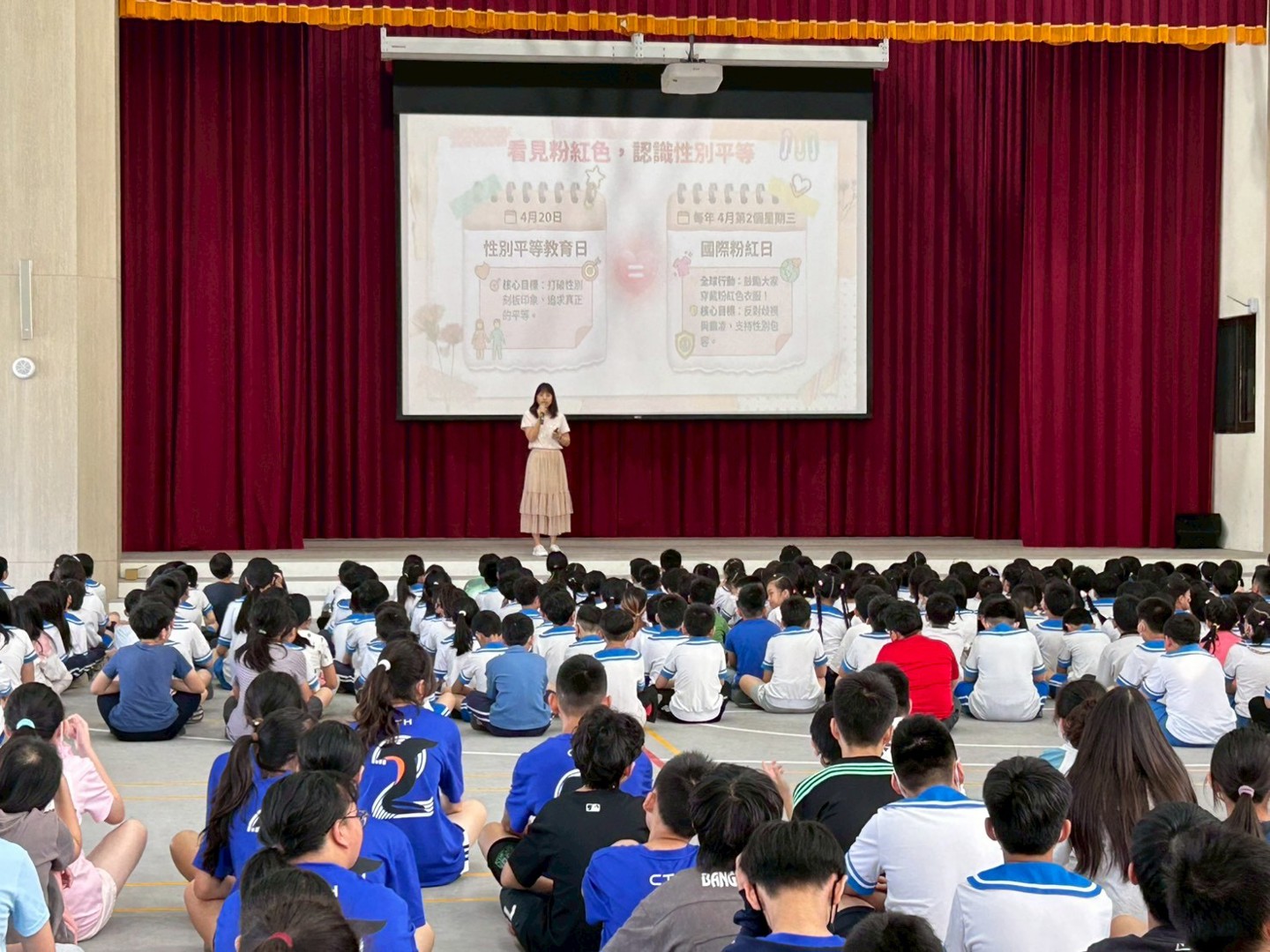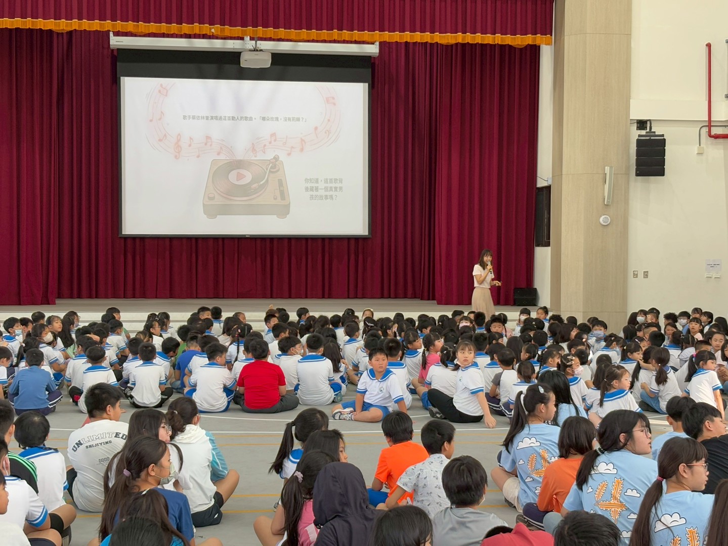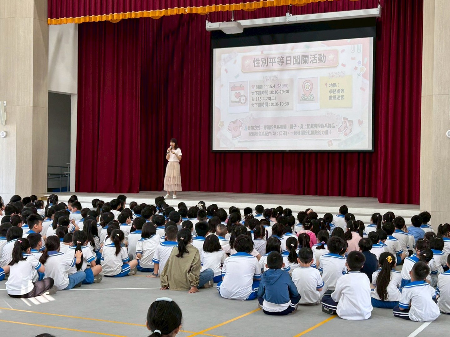 活動一開始,輔導室老師特別播放了歌手蔡依林的《玫瑰少年》,與孩子進行互動,並向全校師生娓娓道來葉永鋕的真實故事。透過充滿同理心的引導,孩子們了解到永鋕大哥哥當年因為喜歡跳舞與畫畫等特質,遭受刻板印象的嘲笑與校園霸凌,甚至不敢在下課時間去上廁所,最終釀成無法挽回的遺憾。藉由這個故事,帶領孩子們深刻反思,學習打破性別框架。