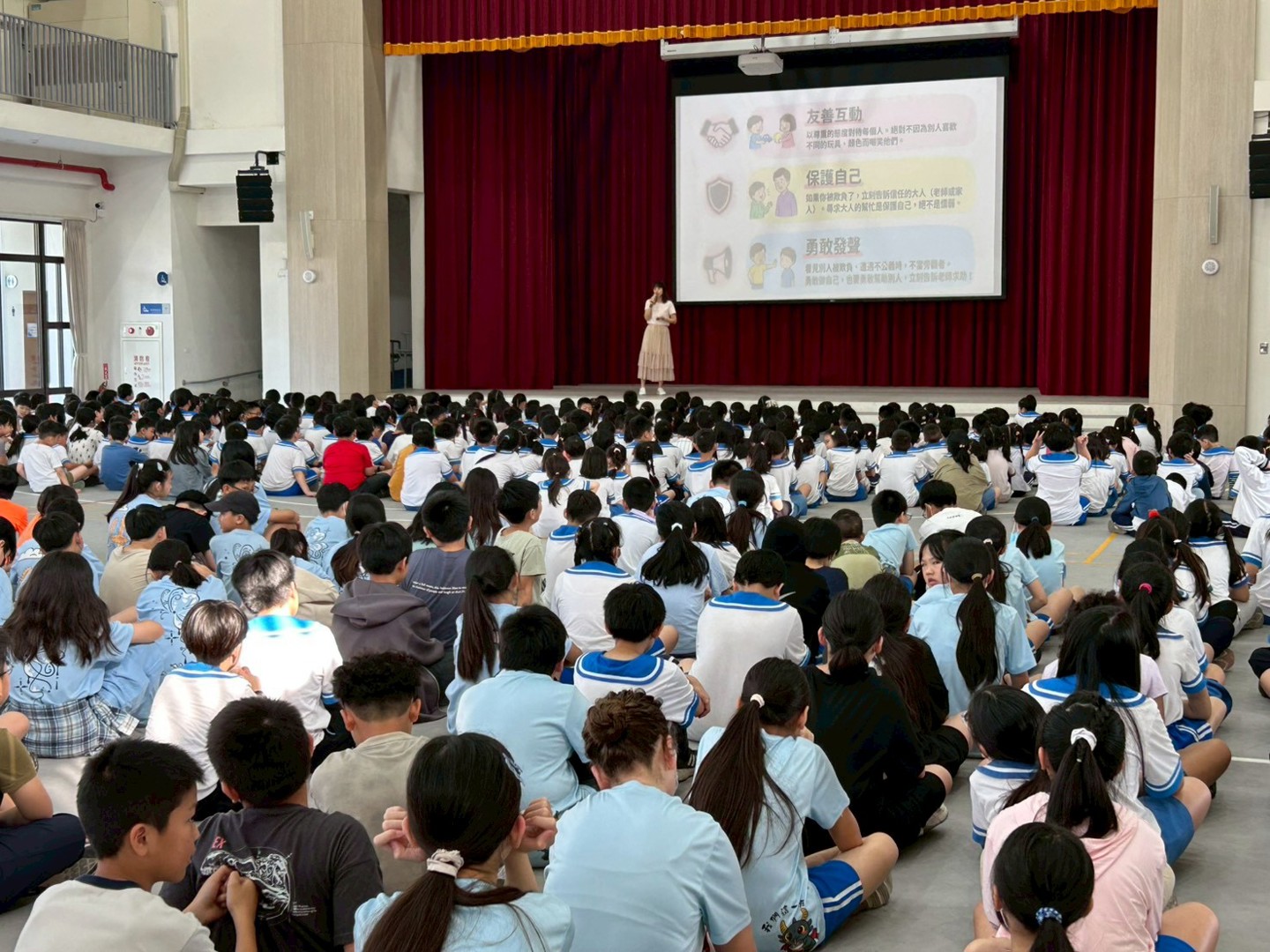 為了讓性平觀念落實於日常,輔導室老師在朝會中給予全校孩子「三個重要叮嚀」:第一、尊重不一樣,不因差異而歧視;第二、遇到欺負時保護自己,勇敢尋求大人幫助;第三、看見不公義時勇敢發聲,絕不旁觀。