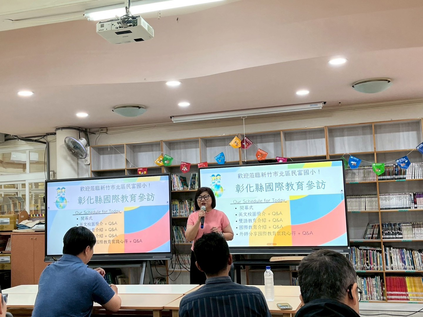 4月20日下午,彰化國際教育參訪團蒞臨本校進行交流參訪。首先由校長致詞並致贈特色文化禮物,接著由教學組長進行整體校務簡介,教務主任說明本校雙語教育的推動現況與實施策略,並由英語老師分享國際教育課程規劃及海外交流的實施成果。