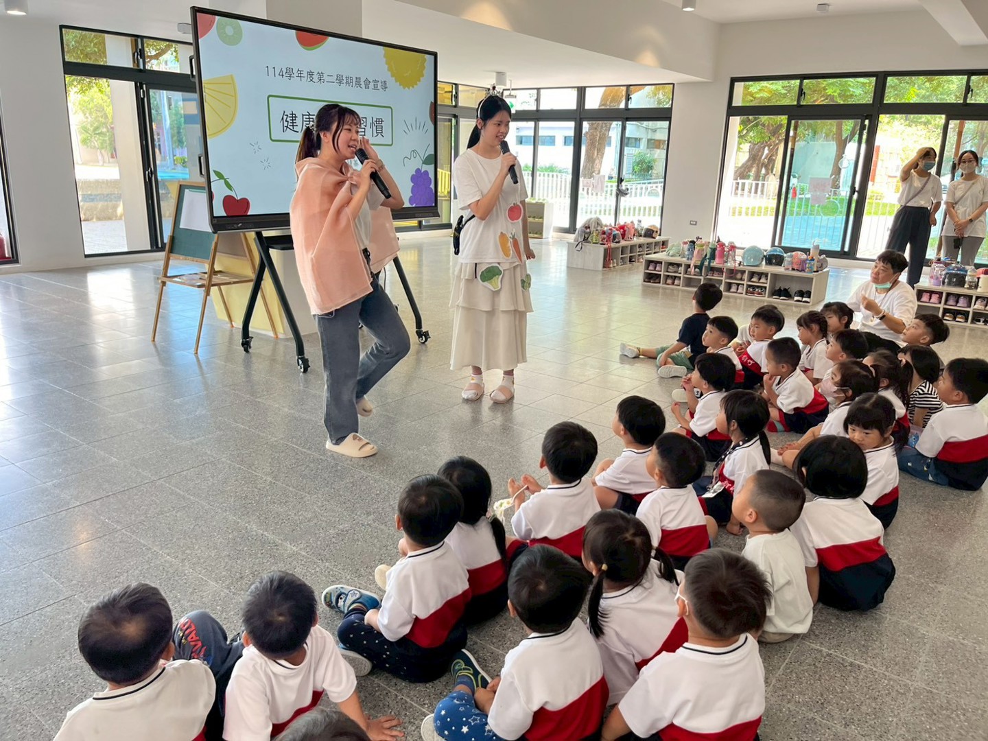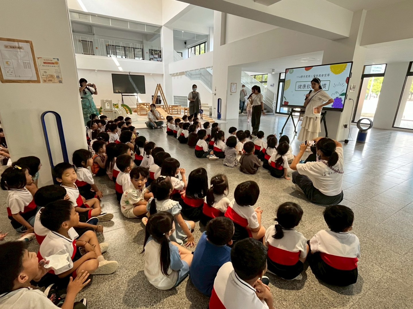 看著全園孩子努力分辨「紅燈食物」與「綠燈食物」的模樣,
