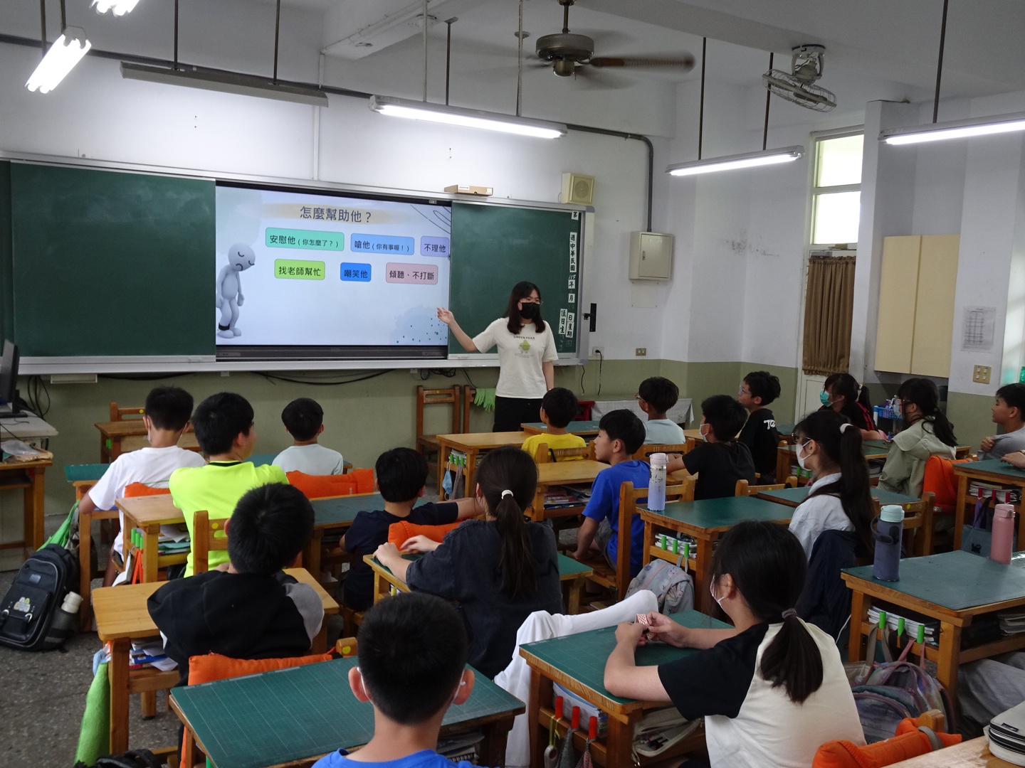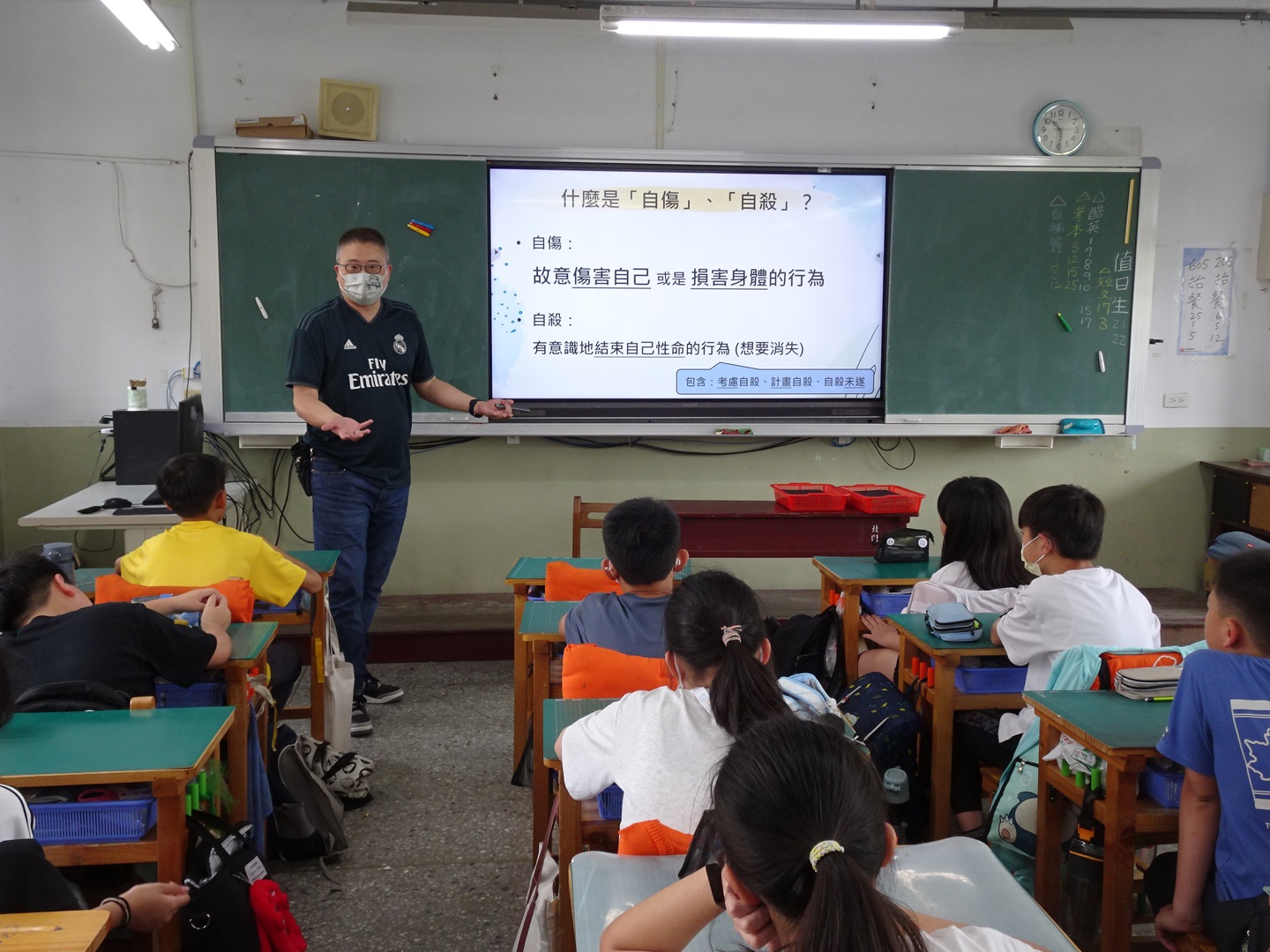宣導過程中,老師們引導學生學習在產生負面情緒時的應對方法,包括接納真實的情緒、練習正向思考、維持規律作息、向親友傾訴,以及親近大自然放鬆身心。透過生動的遊戲互動,學生們皆專心聆聽並積極參與討論。宣導團隊特別強調,當同儕發出求救訊號時,及時的了解與傾聽至關重要,若發現自己或身邊同學情緒持續低落,應主動尋求師長、輔導處、家長或張老師專線 1980、生命線 1995 的專業協助。