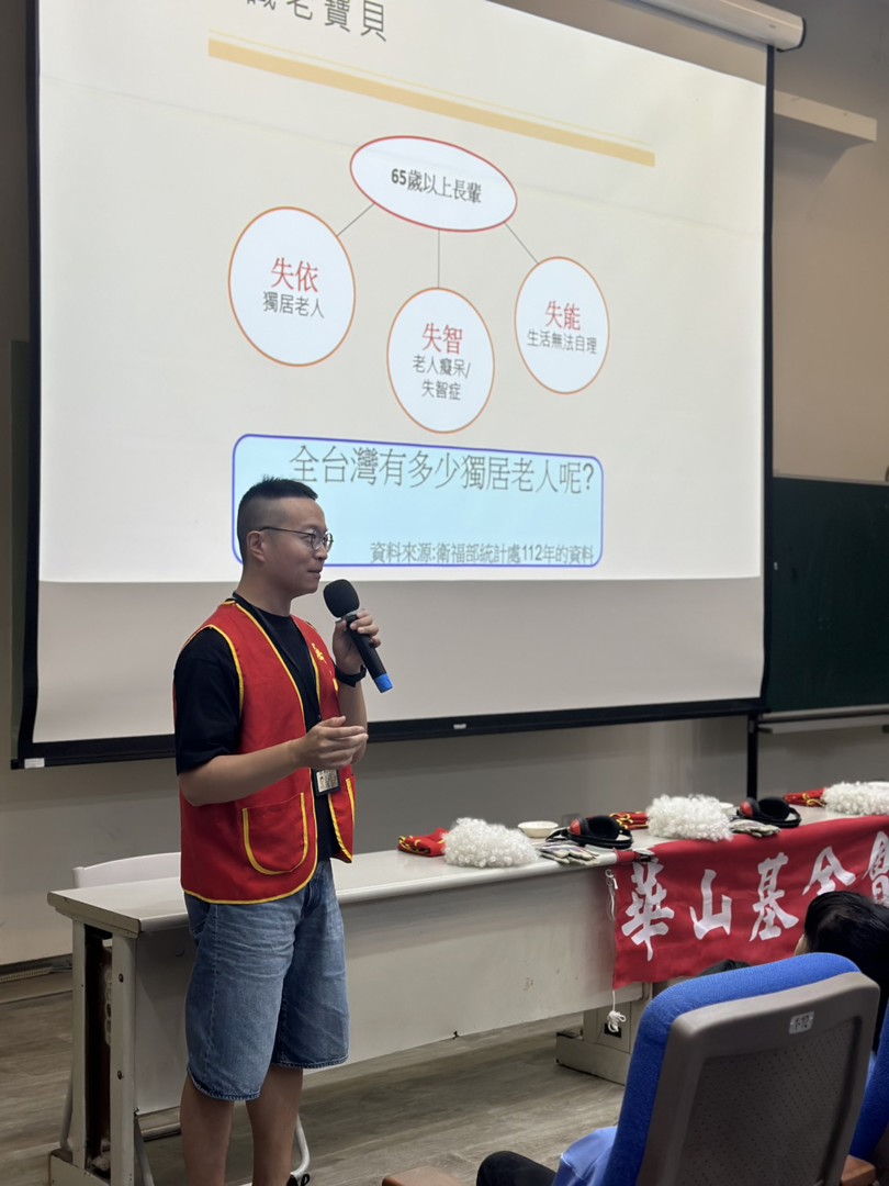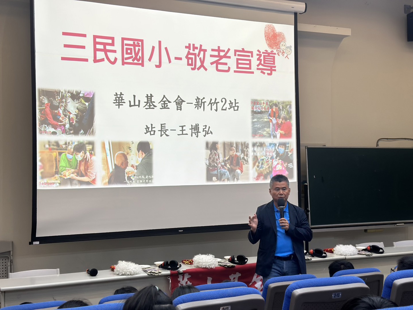 今日邀請華山基金會新竹二站站長王博弘先生蒞臨本校,為學生帶來一場深刻的講座。他向孩子們娓娓道出許多獨居長者的生活現況,以及他們在生活上的種種不便。