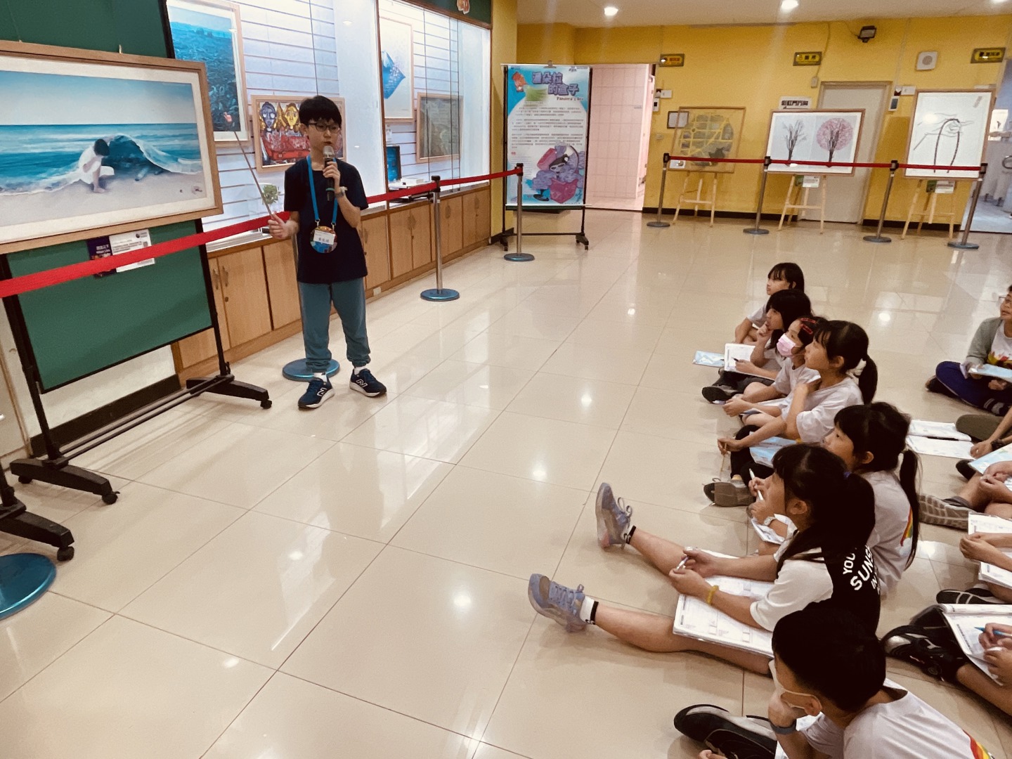 活動當天,孩子們展現出高度的專注與學習熱忱,隨著導覽內容一步步認識全球環境議題,從氣候變遷到資源永續,每一項主題都引發學生濃厚的興趣。專心聆聽的模樣十分可愛,眼神中流露出對未來世界的關心與好奇。