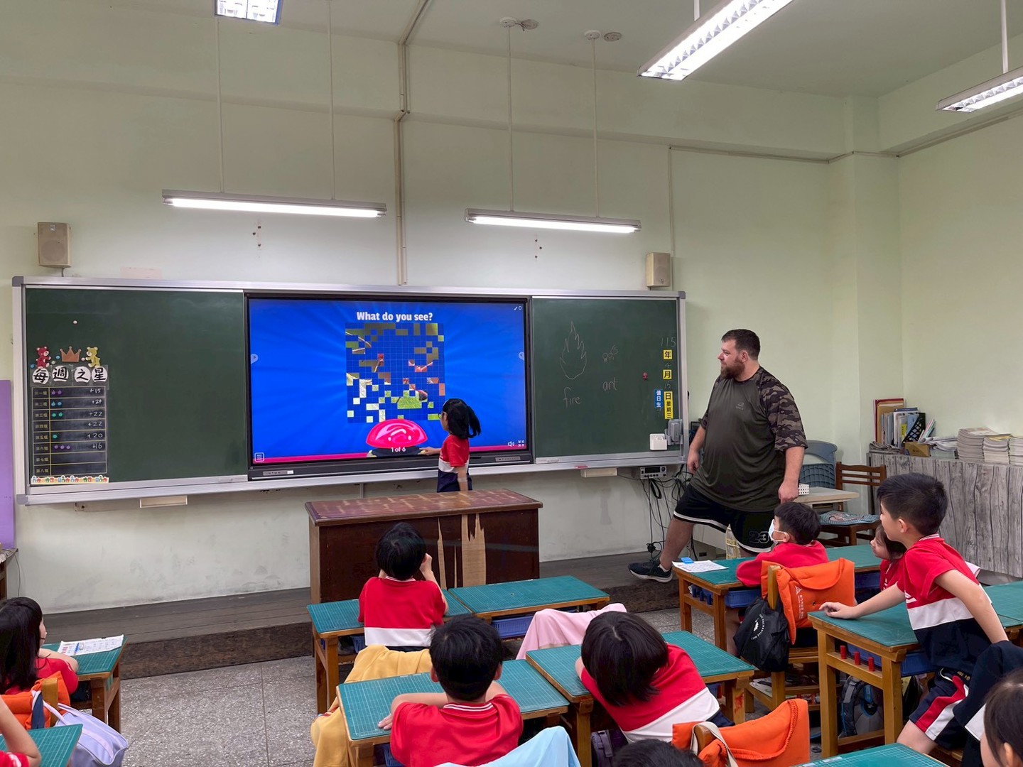 在教室裡,孩子們也同樣開心地和英文成為好朋友。