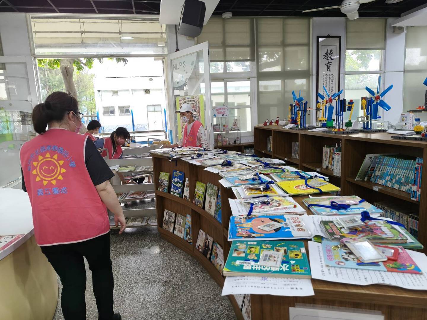 除了繁重的櫃台業務,志工們更穿梭在書架之間,辛勤地進行排書與整書上架的工作。面對成堆歸還的書籍,她們總能以最快的速度讓圖書館恢復整潔與秩序。更令人感動的是,當小朋友在茫茫書海中找不到闖關所需的書籍時,志工們總是揚起親切的笑容上前引導,化身最佳「閱讀導航員」,幫孩子們精準找出需要的書籍。