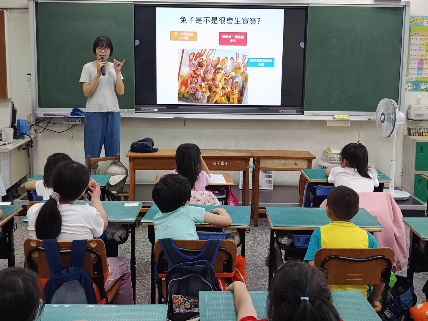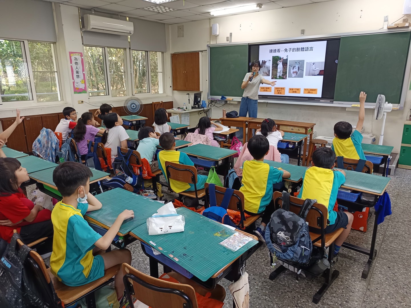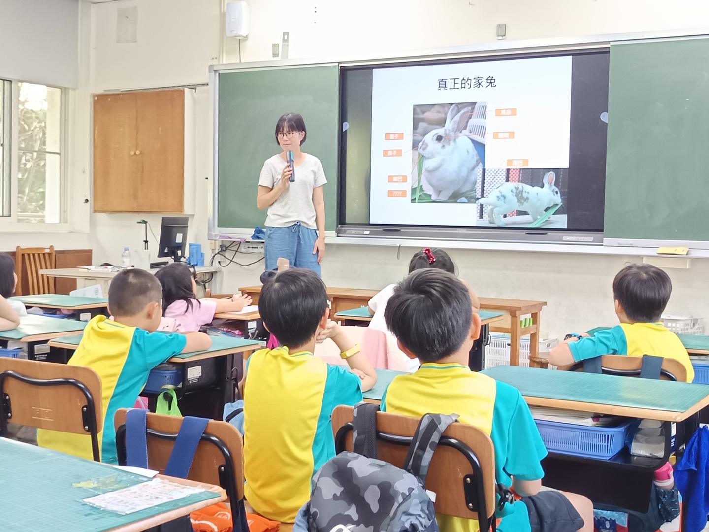 本次講座分為兩節課進行。第一節課中,講師從生活中常見的兔子出發,介紹兔子的生活空間、壽命、情緒表達方式及飲食習慣等知識。學生們也進一步了解飼養兔子需要付出的時間與責任,例如提供適當的環境、正確的食物,以及細心的照顧,讓同學們明白「養動物不是一時興趣,而是一份長久的承諾」。