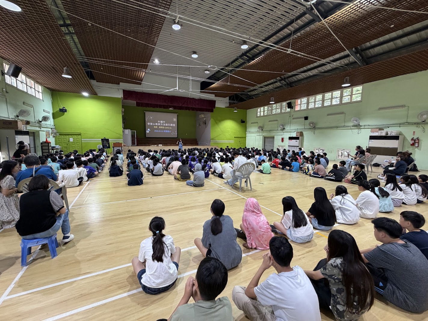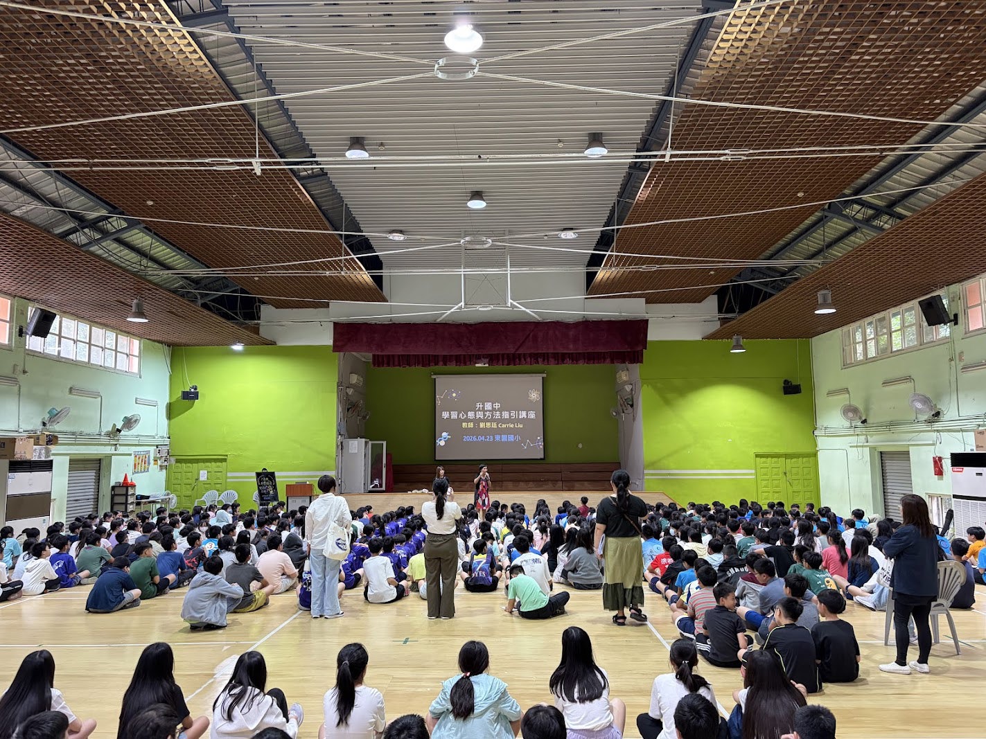 115年4月23日下午,在東園國小體操館舉辦了一場升國中的學習心態與方法講座。本次活動邀請到劉思廷老師擔任主講人。